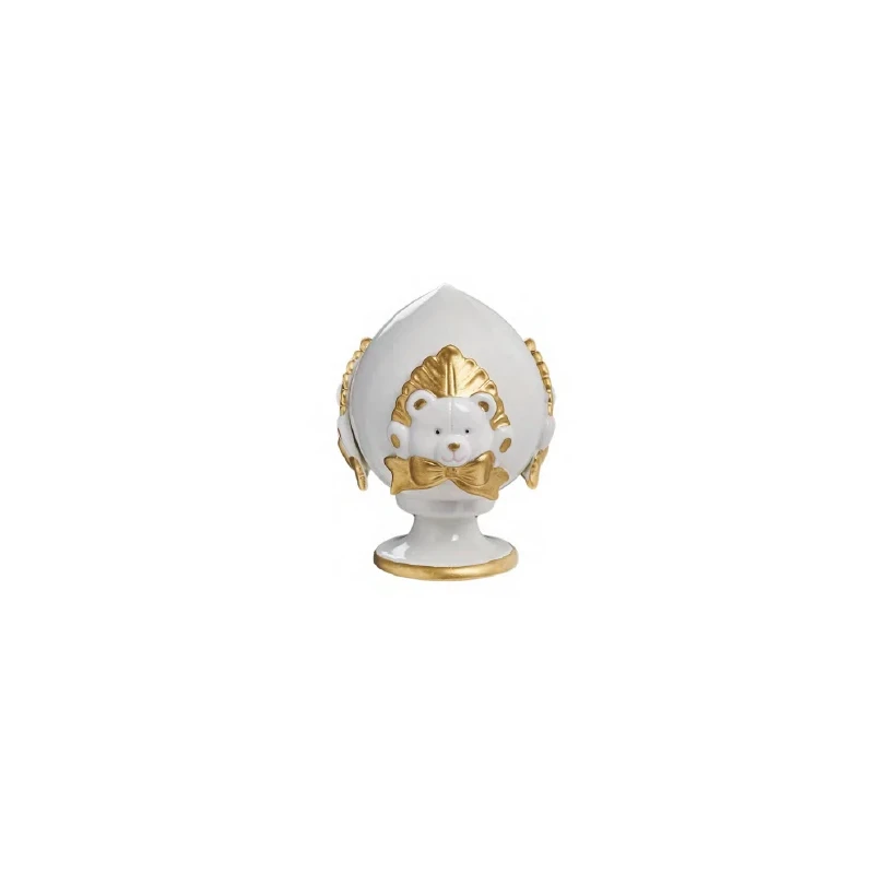Elegant teddy bear figurine by Henriette, white with gold details, 14 cm tall. Perfect for decorating your home or as a refined Christmas gift.