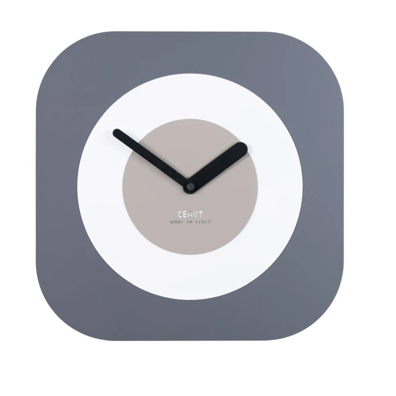 The Girotondo Wall Clock by Ceart is an elegant example of minimalist Italian design, perfect for modern and refined spaces. Crafted from laser-cut metal, it combines three harmonious, neutral shades: gray, white, and dove gray, lending visual balance and versatile décor. The black hands stand out clearly on the dial, ensuring precise and immediate readings. Measuring 31 x 31 cm, this wall clock combines clean lines and high-quality materials, perfectly suited to living rooms, offices, kitchens, or entryways. The quartz movement ensures reliability and silence, while Ceart's artisanal care enhances every detail. A furnishing accessory that transforms time into an element of style, balance, and contemporary design.