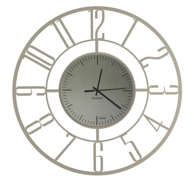 Elegant design and Italian craftsmanship with the Penelope Black Edition wall clock in pastel dove gray metal and a smoked black mirrored glass dial. Modern style, refined finishes, and Ceart quality.