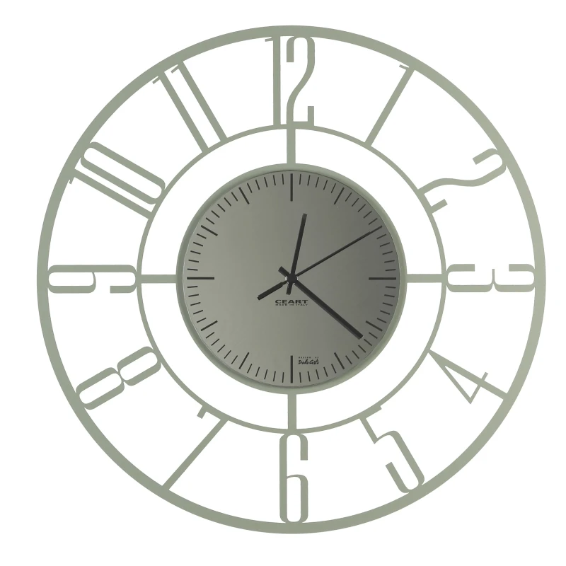 Elegance and Italian design come together in a single piece: the Penelope Black Edition wall clock in sage green metal with a smoked black mirrored glass dial. Refined, modern, and designed by Ceart.