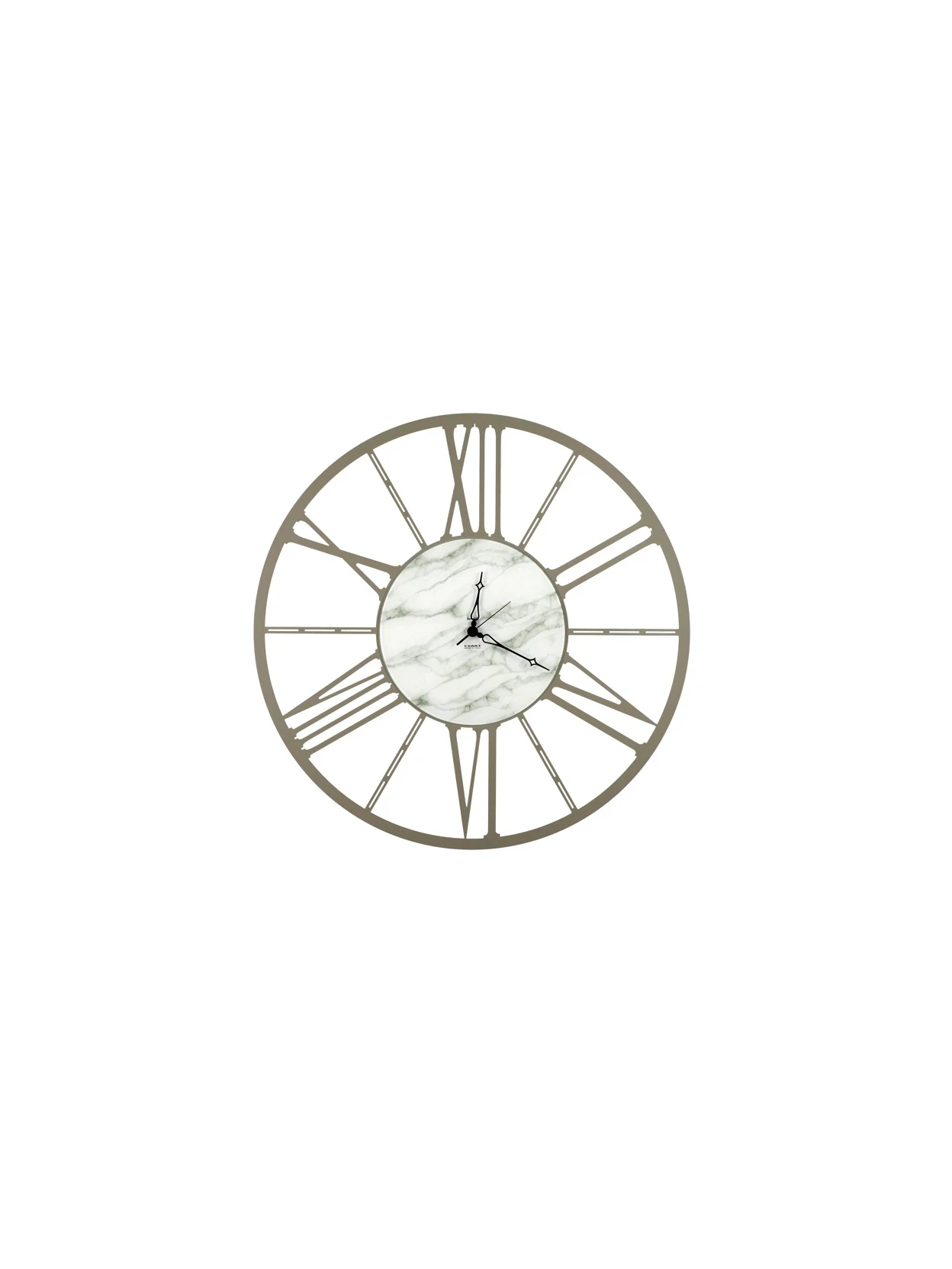 The Ceart Ruota Wall Clock is a refined reinterpretation of one of the collection's most popular models. With a diameter of 50 cm or 80 cm, this clock combines the sophistication of Roman numerals with the modern charm of a marbled glass dial, creating a perfect balance between tradition and contemporary design. Handcrafted in Italy at the Ceart workshop, the clock is made of laser-cut mild steel, finished and painted by hand, a testament to the excellence of Made in Italy craftsmanship. The pastel dove gray finish lends a delicate, versatile, and very trendy look, ideal for decorating modern or classic spaces with a touch of understated elegance.