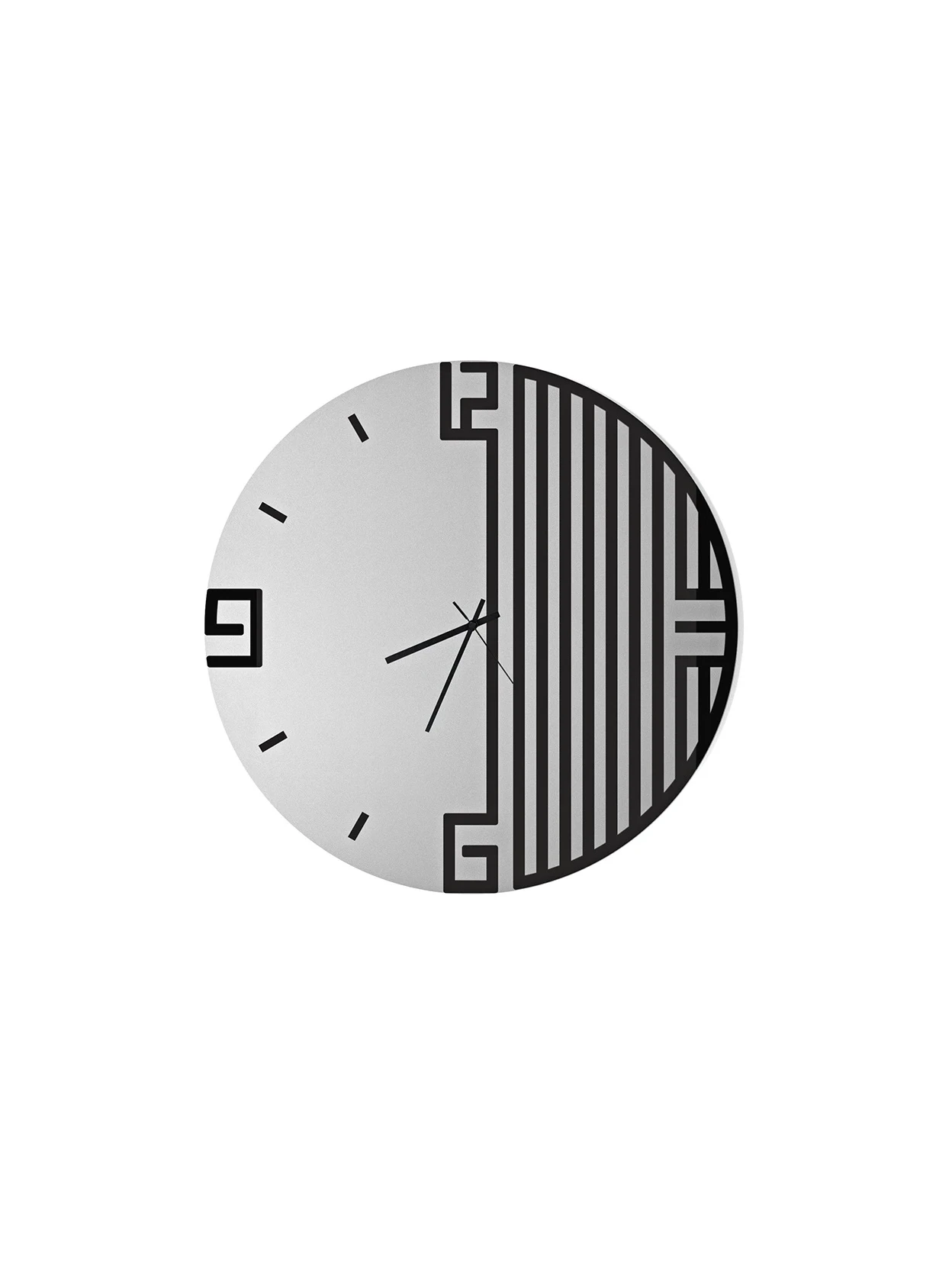Lyra is a designer wall clock with a smoked black mirror base and black painted metal decoration. Elegant, modern, and handcrafted in Italy. Available in diameters of 60 and 80 cm.