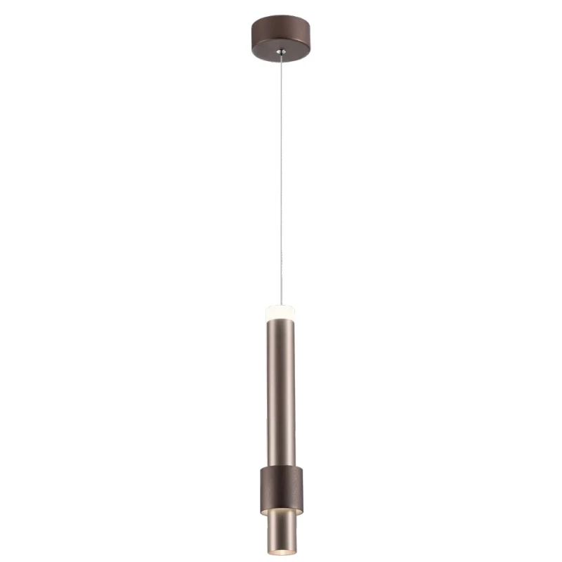 The Tycon pendant lamp is a refined lighting solution designed to create the perfect balance between contemporary aesthetics and luminous quality. The brown anodized aluminum and metal frame, enhanced by a matching decorative ring, conveys an elegant and understated character, ideal for modern environments such as living rooms, kitchens, dining rooms, and professional spaces. The satin acrylic diffuser softens the light and allows for both direct and indirect emission, creating a more welcoming and visually harmonious environment. Integrated LED technology combines a 5W COB module with SMD LEDs, offering a total power of 6W and a high-quality 3000K warm light, with a CRI of 90 and a precise 36° optical beam. The pendant lamp guarantees reliable luminous efficiency, a long lifespan, and true-to-life color rendering, making it an ideal choice for those seeking an elegant, modern, and high-performance lamp from Redo Group.