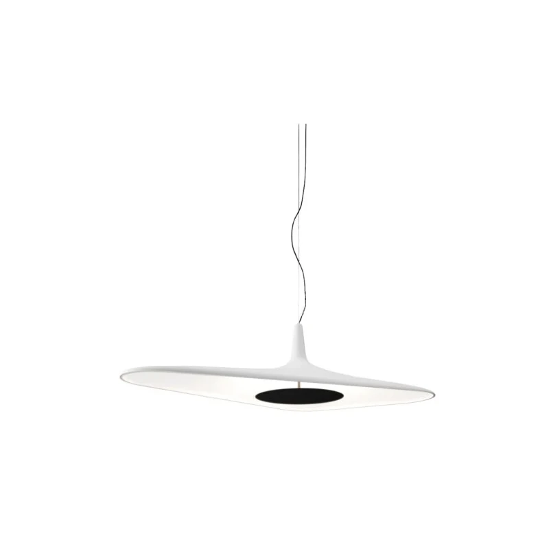 The Soleil Noir suspension lamp by Luceplan, in a refined white finish, is a sculptural presence that illuminates with elegance and personality. Its fluid form in molded polyurethane foam and the integrated 35W LED source create a soft, uniform light, ideal for contemporary spaces requiring style and high performance.