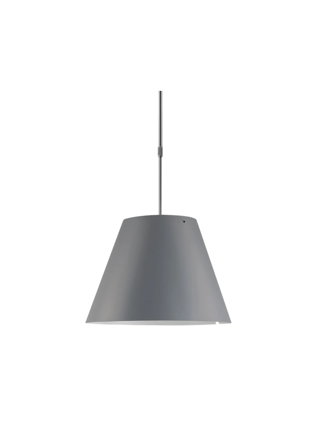 The Costanza pendant lamp by Luceplan is a captivating and inimitable modern reinterpretation of the classic bedside lamp, combining tradition and innovation in perfect balance. The essential and rigorous design focuses on the essence of light, enhanced by a lightweight and refined design that makes this pendant suitable for any interior. The aluminum structure and silkscreened polycarbonate shade diffuse a soft, uniform light, ideal for illuminating dining tables, living areas, kitchens, and professional spaces with elegance and visual comfort. Thanks to its height adjustment and dimmable function with an E27 LED light source, Costanza adapts effortlessly to different uses and atmospheres. Part of the historic Costanza family, this pendant lamp manages to be both contemporary and classic, evoking familiar forms while integrating advanced lighting technologies. Choosing Costanza by Luceplan means furnishing a space with an icon of Italian design, capable of enhancing the environment with style, personality, and timeless quality.