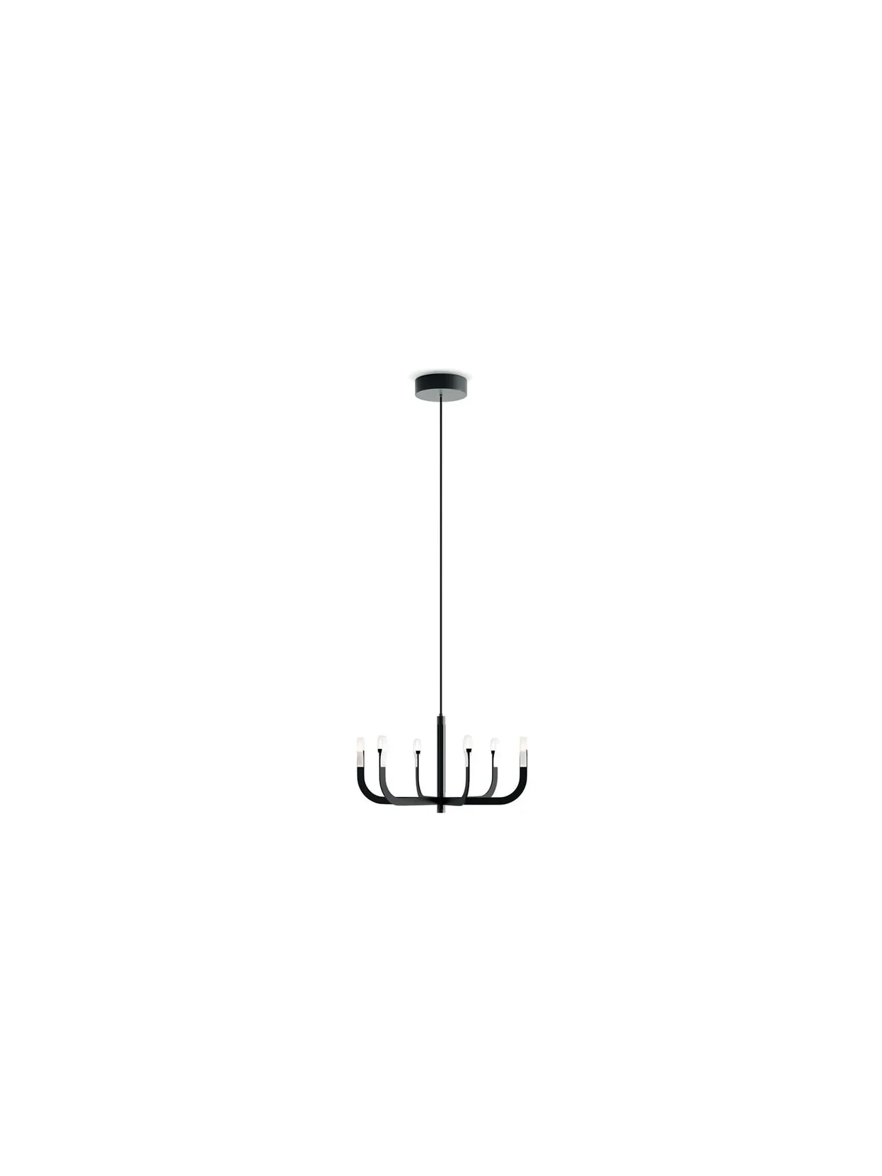 The J-us pendant lamp by Luceplan, designed by Alessandro Zambelli, reinvents the traditional chandelier with slender lines and adjustable arms. Available in matte black or satin gold, it offers a warm, uniform light that enhances any interior space with elegance and visual lightness. Perfect for creating sophisticated compositions with a strong emotional impact.