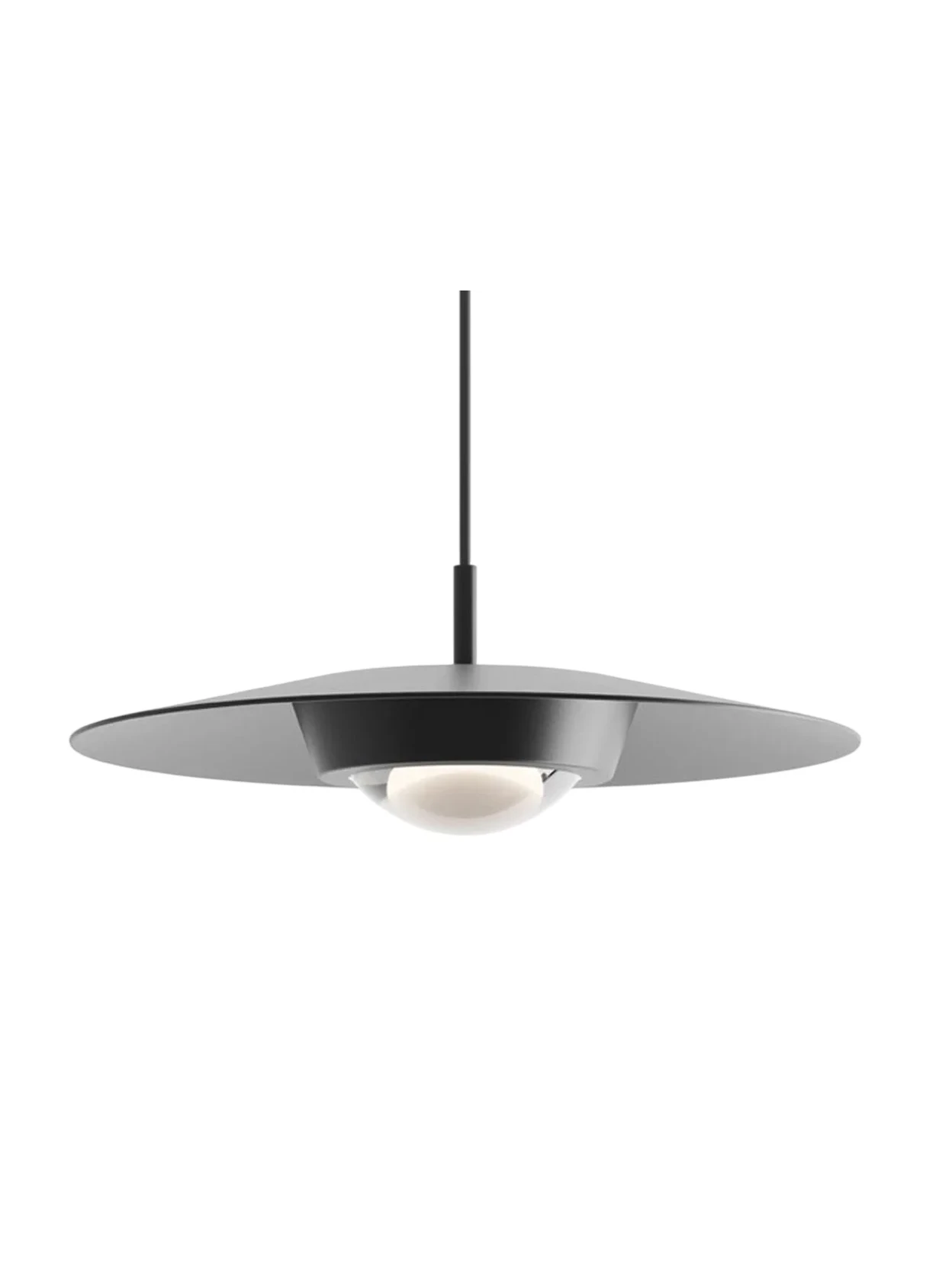The Koinè pendant lamp by Luceplan, in the small Ø 20 cm version with a matte black finish, is a blend of essential elegance and superior light quality. Available with 2700K or 3000K light and with push, DALI, or TRIAC control systems, it is the ideal choice for illuminating residential and professional spaces with precision and visual comfort.