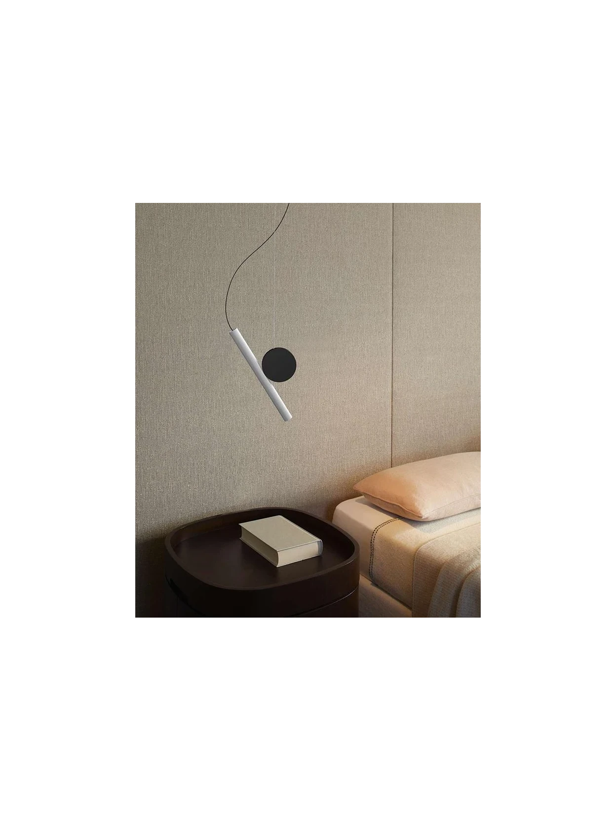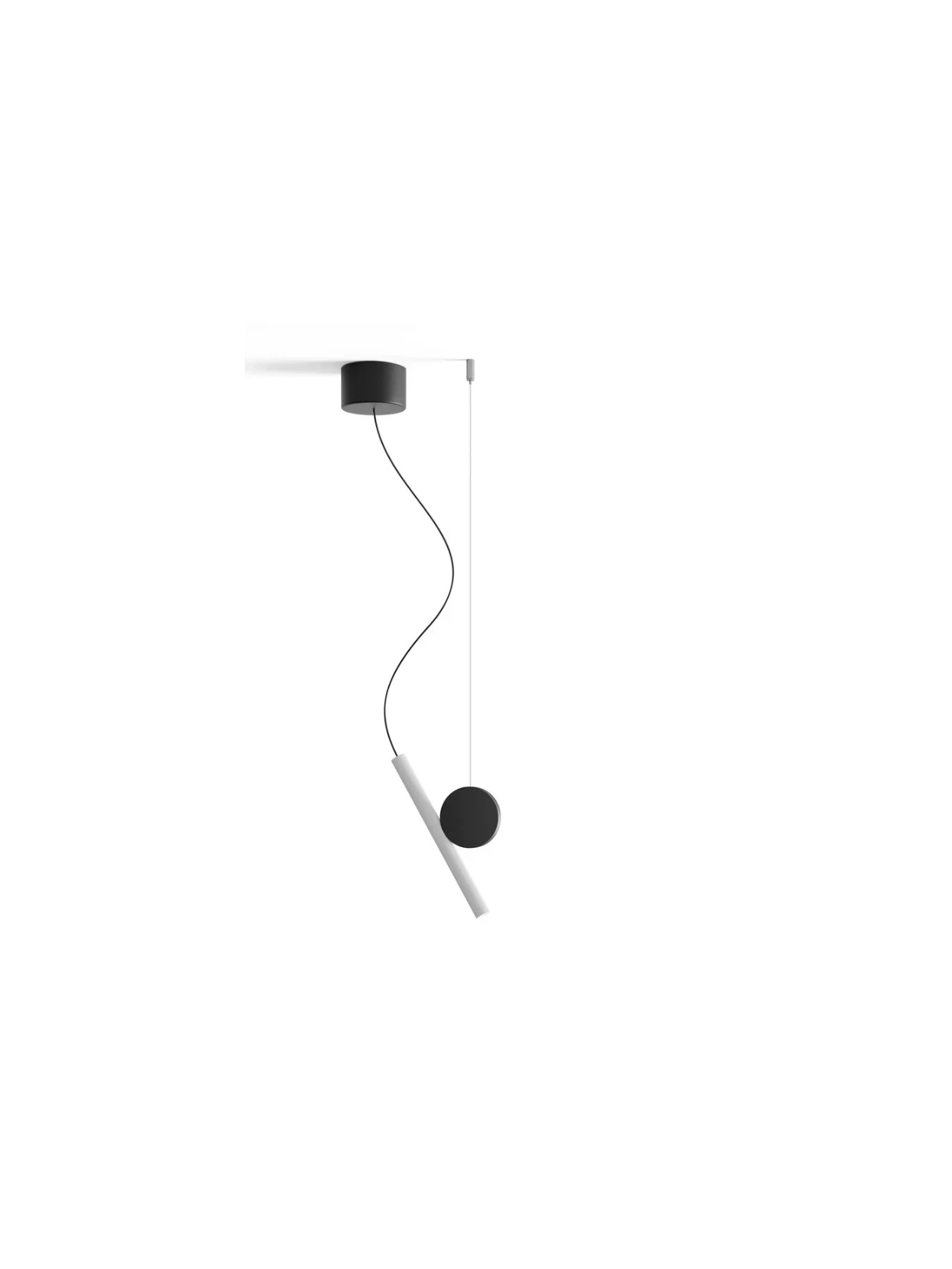 The structure is completed by an aluminum ceiling rose and steel counterweights, also available in black and brass finishes. The 5W LED source, with a CRI of 90, is available in 2700K or 3000K, ensuring warm, uniform, and comfortable light. With a diameter of 25 mm and a height of 300 mm, this compact pendant lamp is perfectly suited to residential, office, or contract spaces, offering designer lighting Made in Italy.