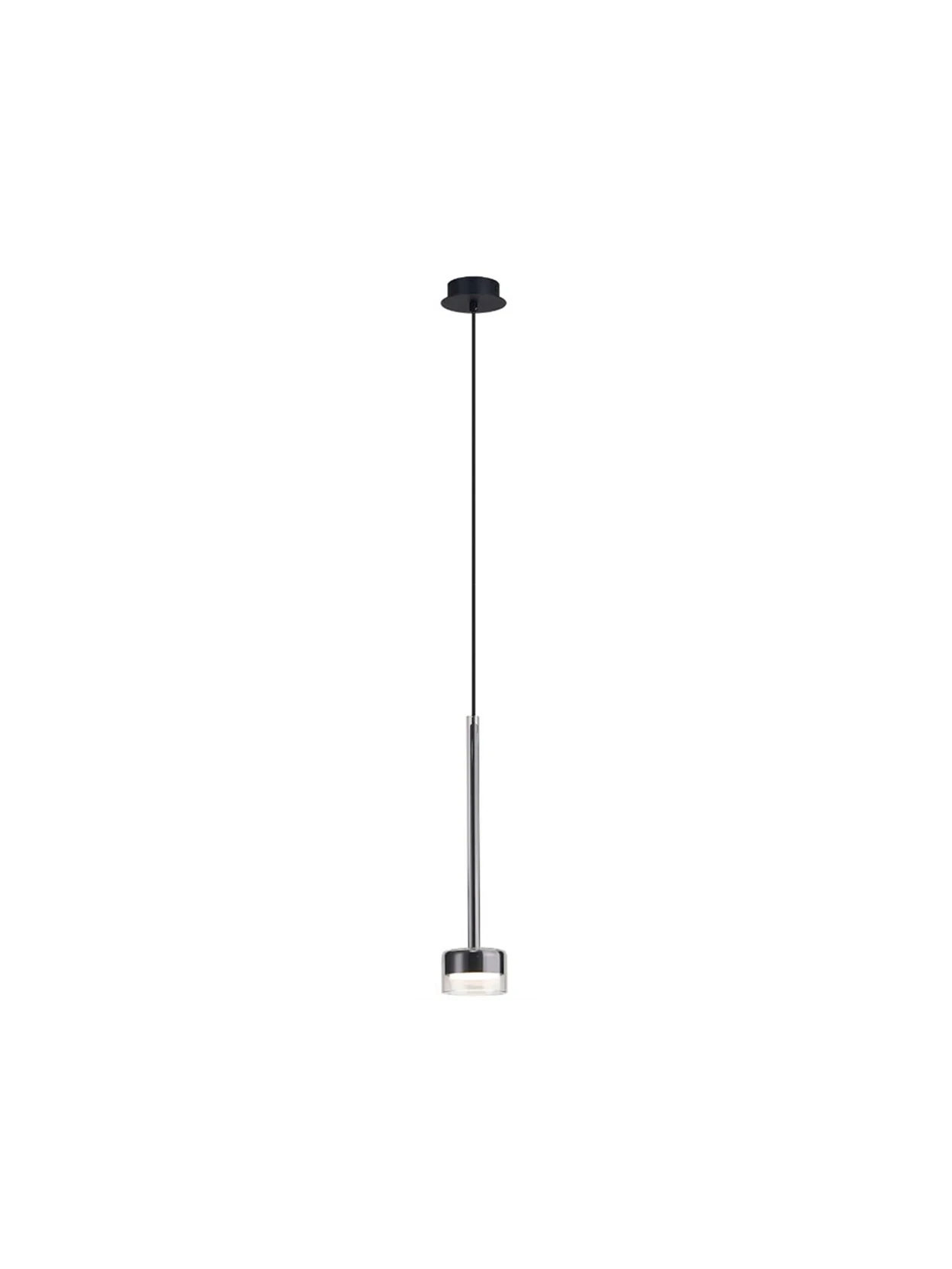 The black cable creates an elegant contrast with the transparent glass, while the compact design (diameter approximately 10 cm) makes this lamp perfect for multiple installations or series compositions. Its IP20 rating makes it suitable for indoor use only, while its protection class I ensures reliability and safety.