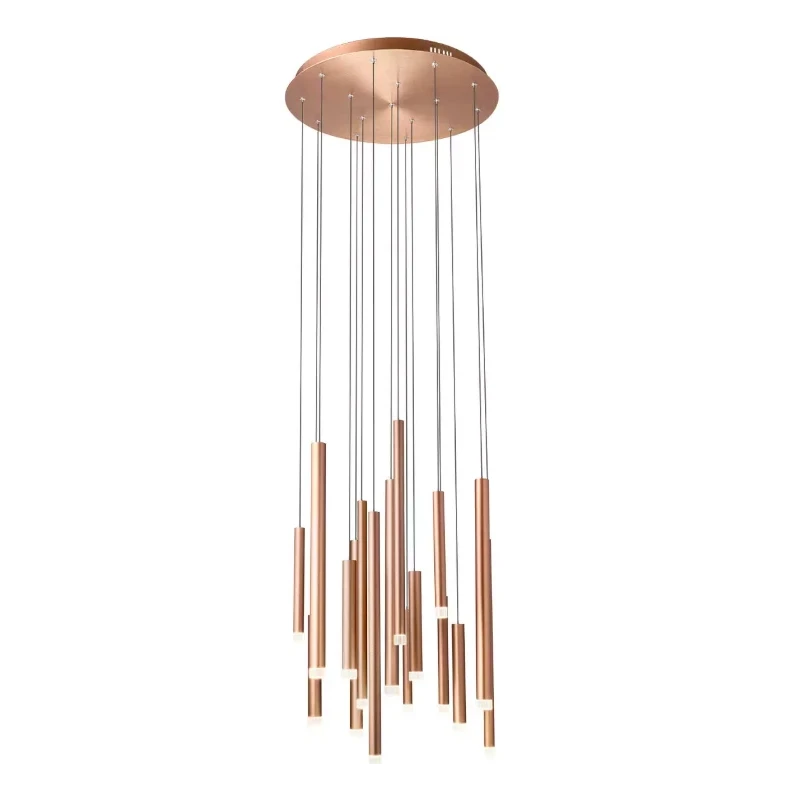 Madison by Redo Group is a multiple pendant lamp distinguished by its minimalist and elegant style. The frame is made of metal and brushed aluminum with a matte copper anodized finish, while the transparent acrylic diffusers enhance the purity of the light, making it ideal for modern and minimalist spaces. It is equipped with a 4W SMD 3030 LED that emits a warm 3000K light. The LED's luminous flux is 450 lumens, with an effective output of 272 lumens at fixture level. The lamp has a CRI of 80. It is not dimmable, operates on a voltage of 220–240V at 50/60Hz, and is certified in protection class I with an IP20 rating.