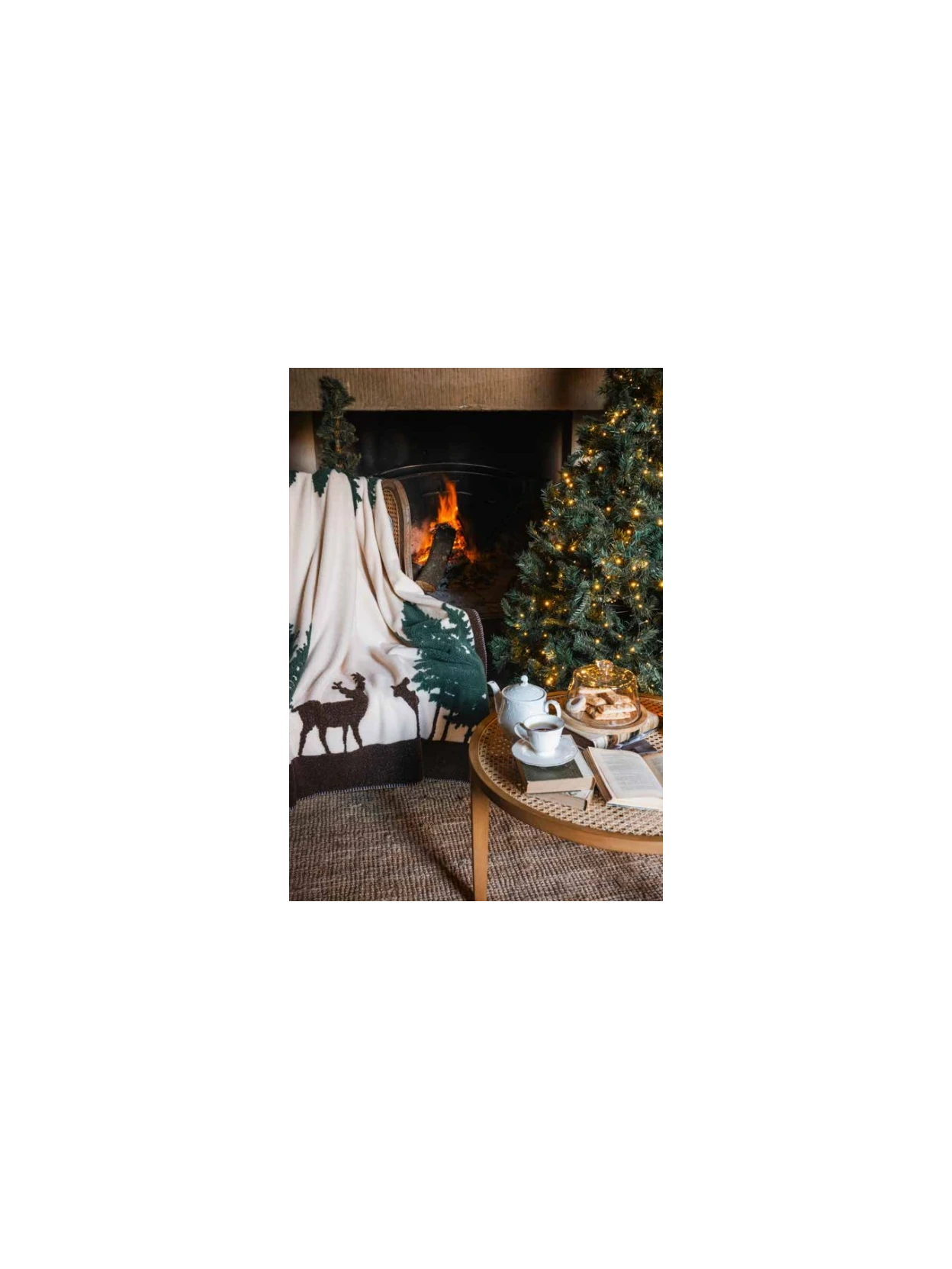 Blanc MariClò - Gran Paradiso Sherpa Throw with Trees and Moose - 140 x 170 cm