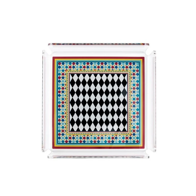 Elegant and functional, the Decor line's valet tray combines style and practicality. Made of lightweight, durable, clear acrylic, it's perfect for storing keys, coins, and small accessories. The colorful, pop-style base adds a touch of cheerfulness to any space. Available in Modern, Foulard, Rainbow, and Ethnic variants, it's the ideal accessory for those who love design and utility in a single item.