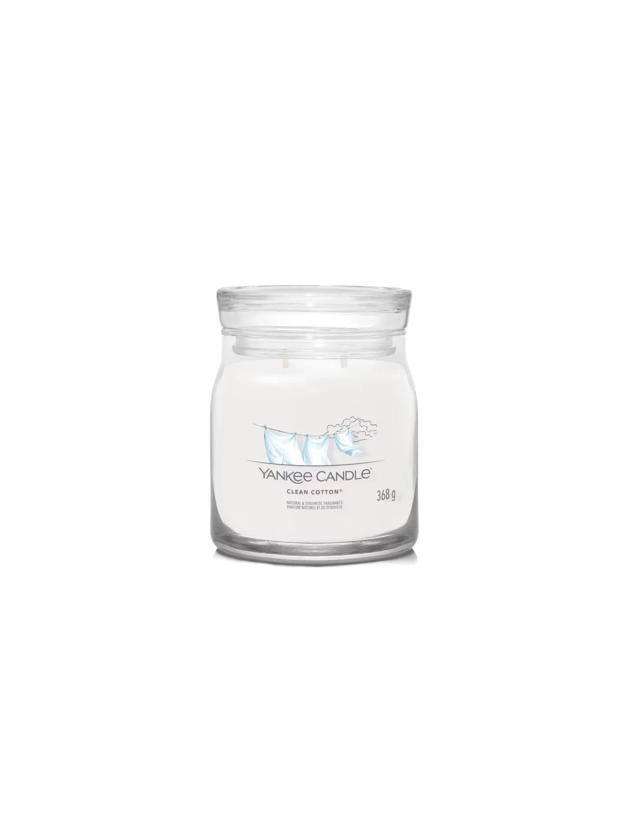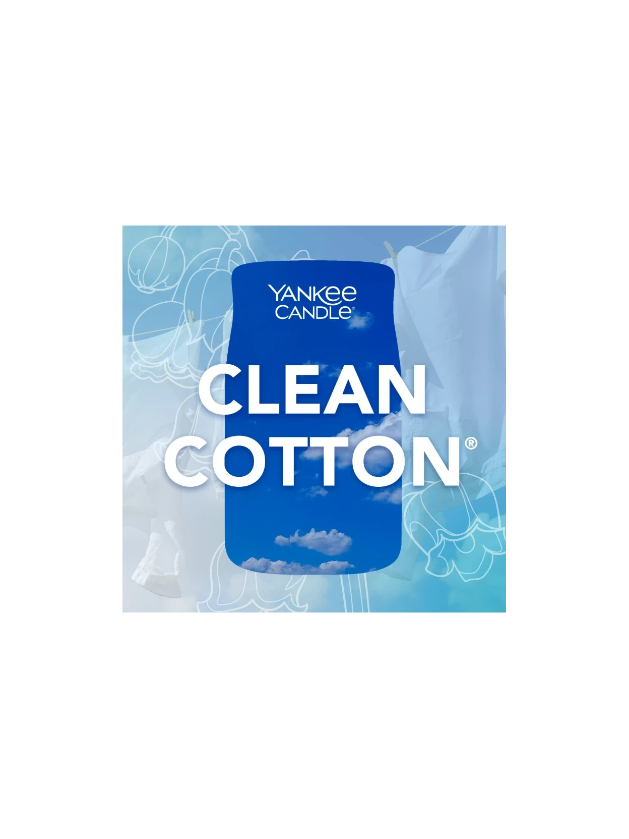 Clean Cotton® by Yankee Candle is a medium jar candle with bright green notes that open like a morning breeze between your sheets, while a heart of lily of the valley and white flowers adds a floral delicacy that smells of authentic cleanliness. The whole thing is enlivened by a hint of citrusy lemon, which provides energy and lightness, before settling into a soft base of vetiver that envelops the room in a feeling of comfort and serenity. It's a fragrance that conveys order, care, and well-being, perfect for those who want to bring the pleasant sensation of "freshly laundered clothes" and the clear atmosphere of a sunny day into their home.