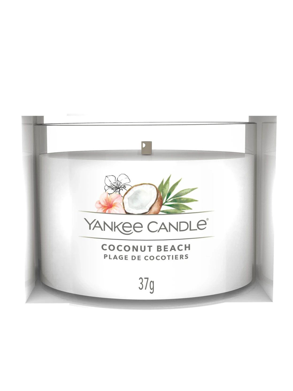 Yankee Candle's Coconut Beach is a votive candle in a glass; an olfactory journey to the tropics, where the sun caresses the skin and the air is filled with sweetness. It's a fragrance that evokes the relaxed atmosphere of a tropical beach, amidst swaying palms and golden sand. Warm, creamy coconut notes dominate, conveying a sense of comfort and vacation. They combine with juicy pineapple notes, adding a sparkling, sunny touch, while soft, velvety vanilla envelops everything in an enveloping, sensual sweetness. The result is a rich yet balanced scent, perfect for those who want to bring a summery, exotic, and relaxing atmosphere into their home all year round. Coconut Beach is a fruity indulgence that speaks of freedom, lightness, and well-being.