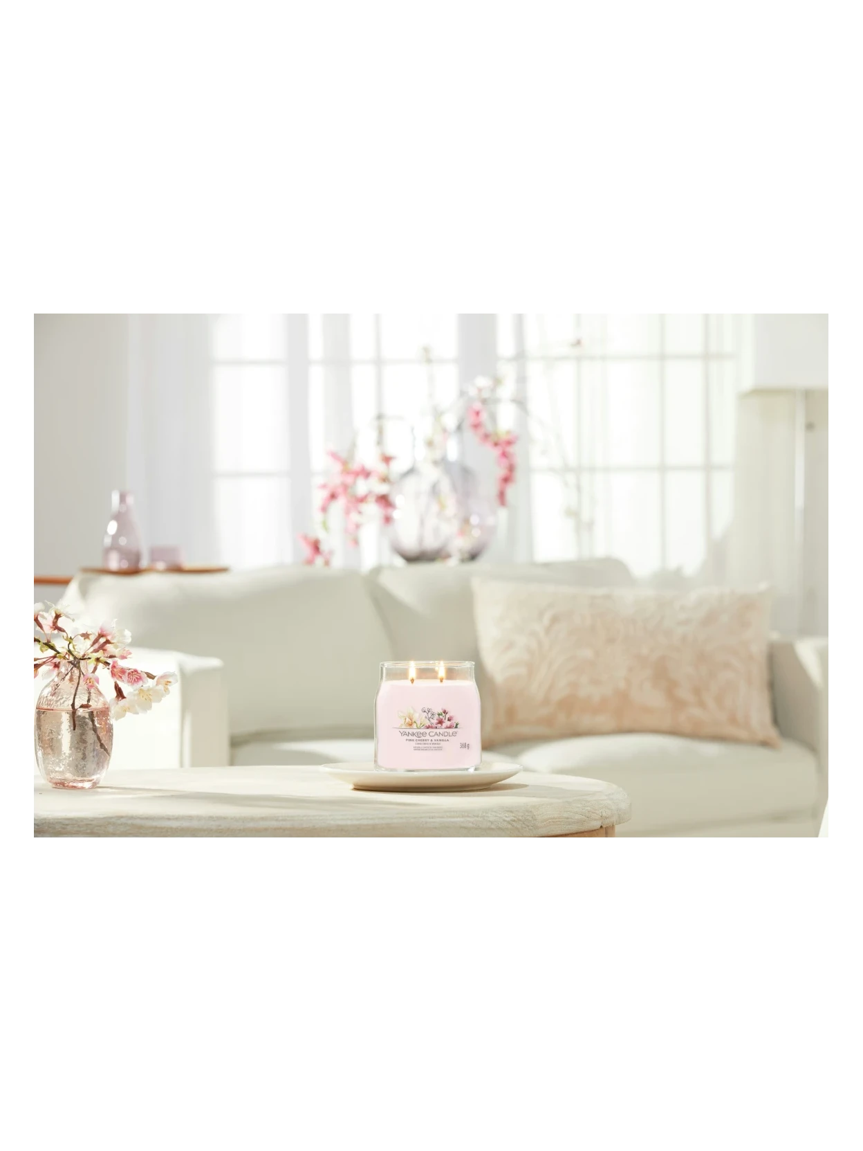 Yankee Candle's Pink Cherry & Vanilla is a medium jar candle; a fruity delight reminiscent of a bowl brimming with cherries and raspberries, embellished with sweet almonds and wrapped in soft clouds of vanilla cream. Top notes of cherry, raspberry, and apricot release a juicy and cheerful vivacity. The creamy heart, with pistachio, cherry blossom, and a touch of milk, adds sweetness and roundness. Finally, the enveloping base of vanilla, almond granola, and musk leaves a warm and cuddly trail. A fruity, indulgent, and irresistibly tender fragrance—perfect for those who love scents that make you dream.