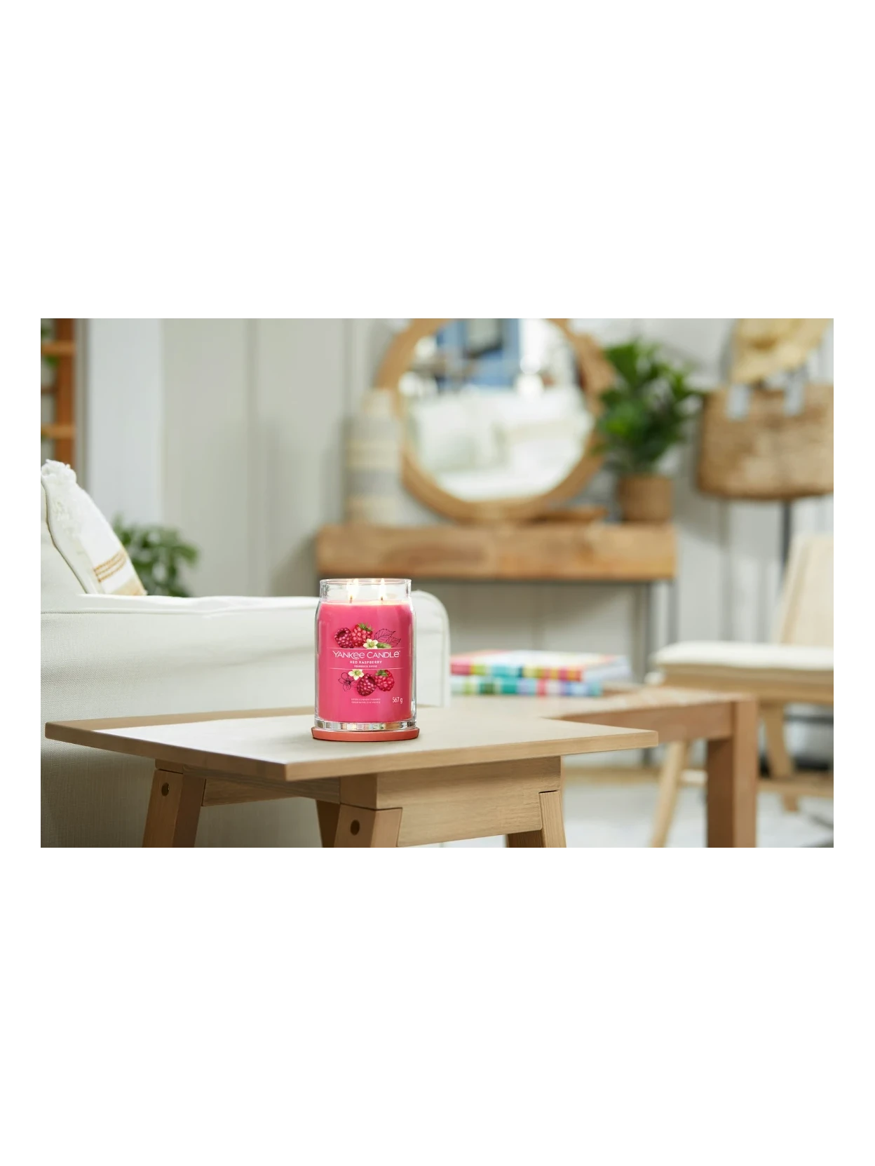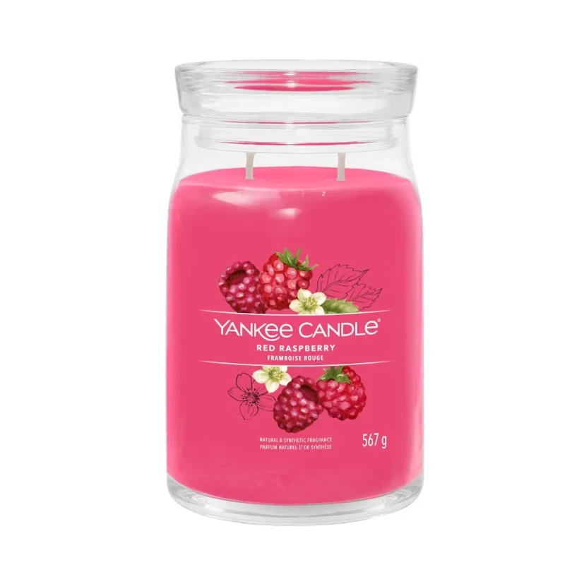 Yankee Candle's Red Raspberry is a large jar candle that opens with sunny top notes of juicy orange, sweet mandarin, and a hint of black cherry. The heart is an explosion of red fruits: black raspberries, strawberries, blackcurrants, and strawberry leaves. The soft base of crystallized sugar and sweet musk envelops the room in a delicious, enveloping trail. A fruity, lively, and irresistible fragrance, reminiscent of nature, summer, and simple, genuine pleasures.