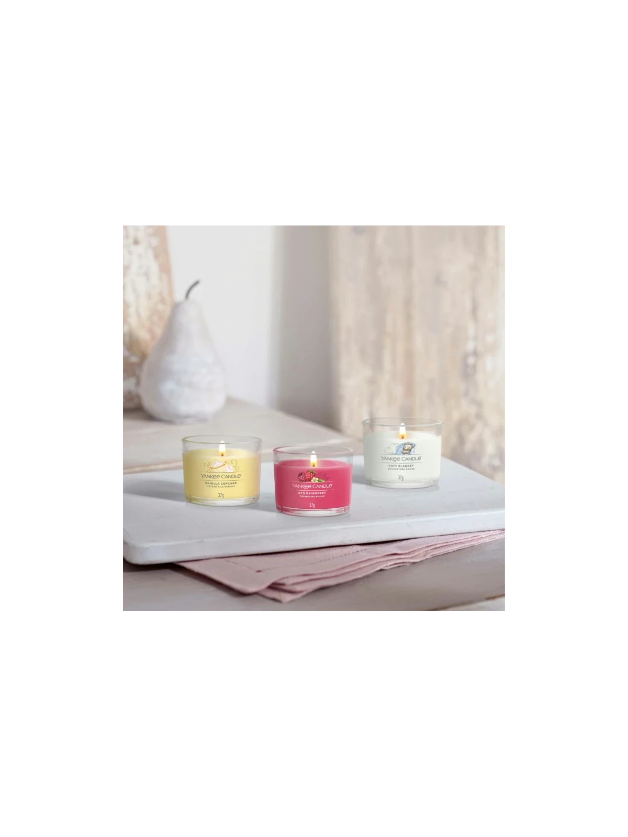 Discover authentic Yankee Candle® fragrances in a new mini size! Sampler candles are perfect for trying new scents or creating creative combinations on shelves, tables, or special corners of the home. Each candle is individually packaged, making it a delightful gift idea for any occasion. Small, practical, and incredibly fragrant.