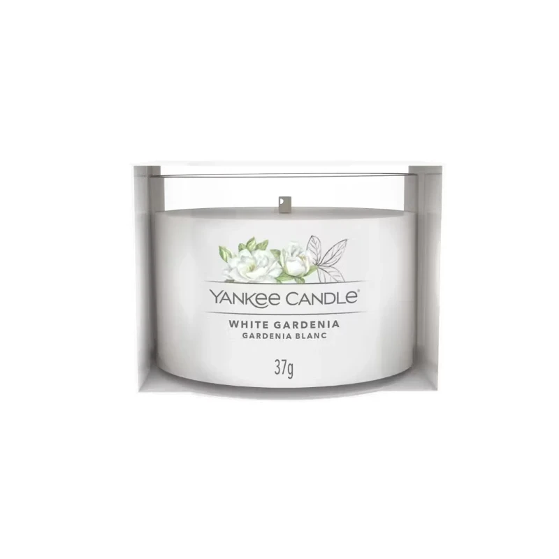 Yankee Candle's White Gardenia is a votive candle in a glass with a captivating scent inspired by the timeless elegance of white gardenias in bloom. This floral fragrance captivates the senses with delicacy and grace, evoking the beauty of a garden in full bloom. The opening is bright and fruity, thanks to juicy notes of peach, berries, and a hint of spicy clove, which bring vivacity and warmth to the composition. The heart notes harmoniously bloom with creamy gardenia petals, accompanied by jasmine, lily, and freesia, for an elegant, velvety, and profoundly feminine bouquet. The base closes with soft notes of musk and woody nuances, giving the fragrance a warm and enveloping trail, perfect for transforming any room into a haven of refined serenity. An ideal fragrance for those who love intense yet balanced floral scents, capable of bringing elegance, tranquility, and a touch of spring into their home in every season.