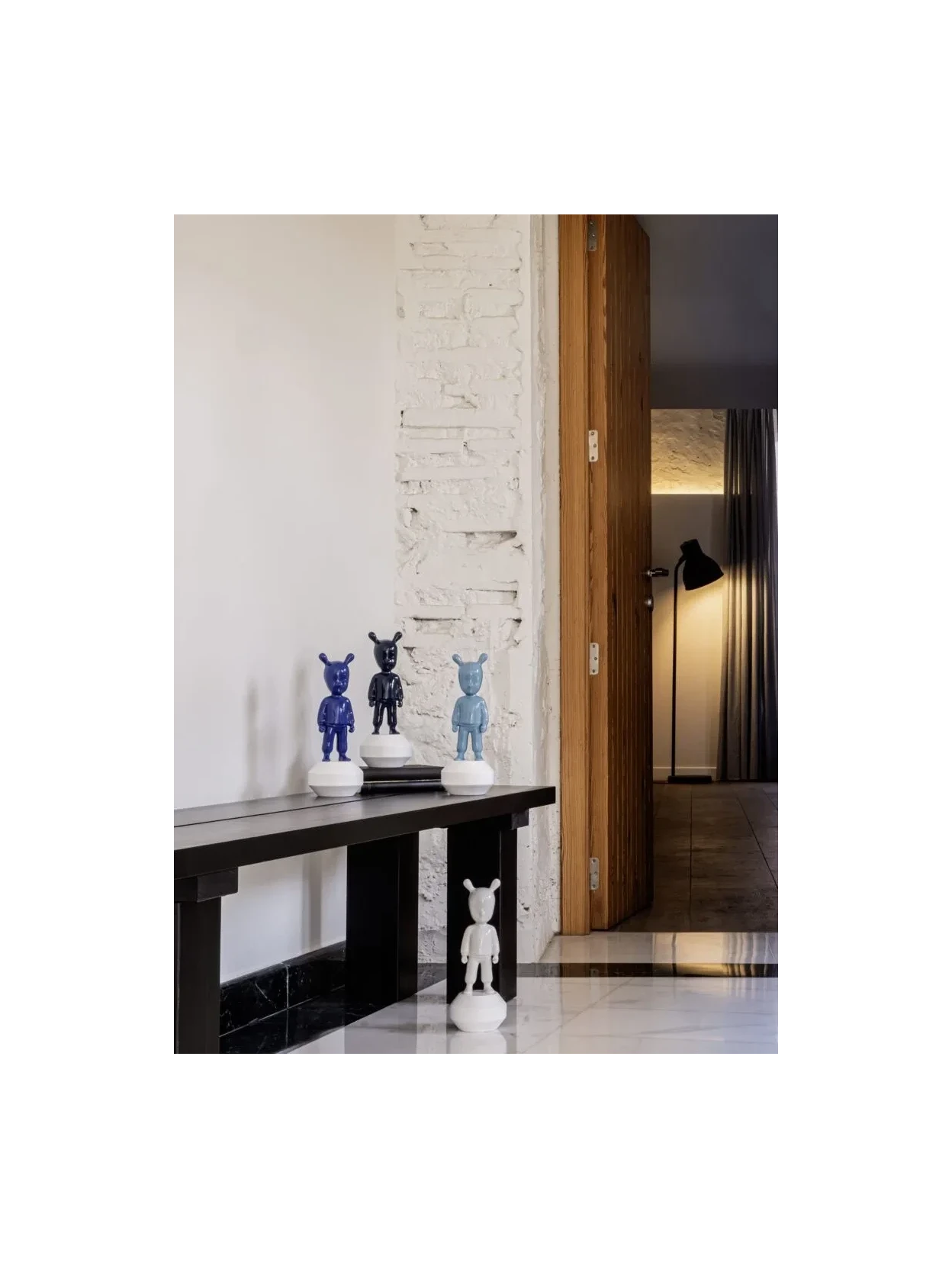 The Indigo Blue Guest is one of the most energetic and contemporary versions of the iconic character designed by Jaime Hayon for The Guest collection by Lladró Atelier. Crafted in glossy porcelain, this sculpture combines the intensity of indigo blue with the purity of a white base, creating an elegant and modern contrast that captures the eye. Indigo blue, a symbol of introspection and depth, gives this edition a magnetic and sophisticated presence. Every detail reflects the craftsmanship of Lladró, a brand renowned for its ability to blend tradition and cutting-edge design.