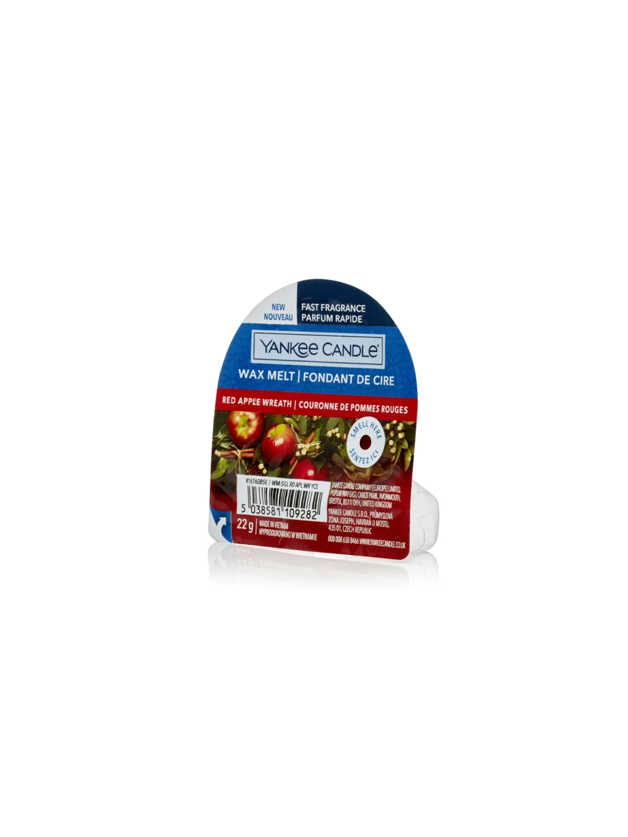 Yankee Candle's Red Apple Wreath is a wax tart that welcomes you with the warmth of the holidays. Top notes of golden apples, cinnamon leaf, and cloves open the fragrance with a spicy, fruity touch. The heart of apple zest, chopped walnuts, and brown sugar lends a sense of sweet tradition, while the creamy base of amber, melted butter, maple syrup, and vanilla envelops the room in a festive embrace. A fruity fragrance that celebrates the pleasure of returning home and experiencing the magic of Christmas with loved ones.