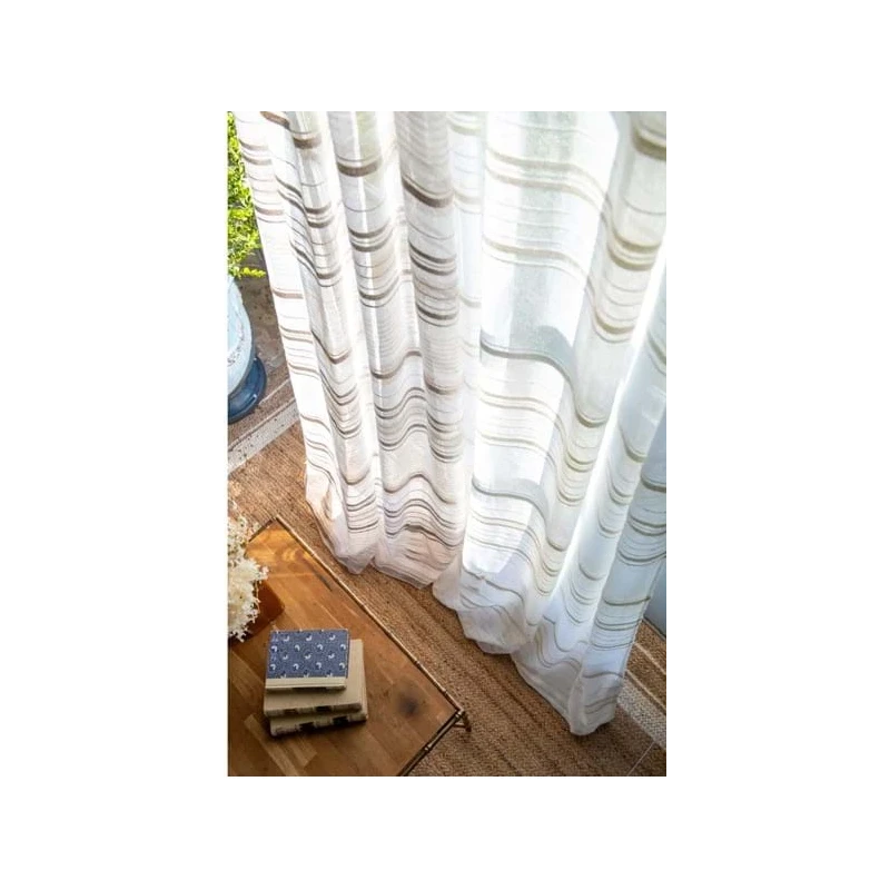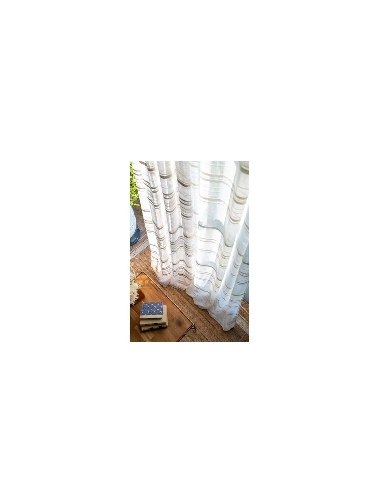 This elegant 100% polyester curtain features brown stripes on a white background, perfect for adding style and brightness to any space. Its 145x290 cm dimensions make it ideal for windows and doors, adding a refined and modern touch to your home.