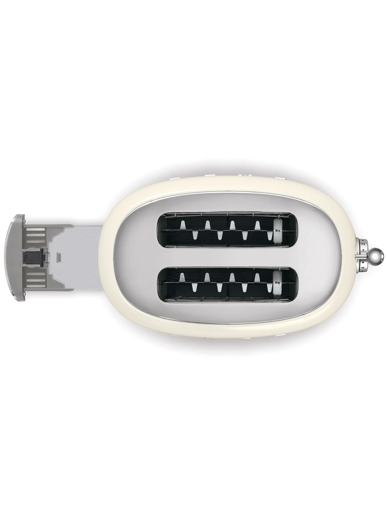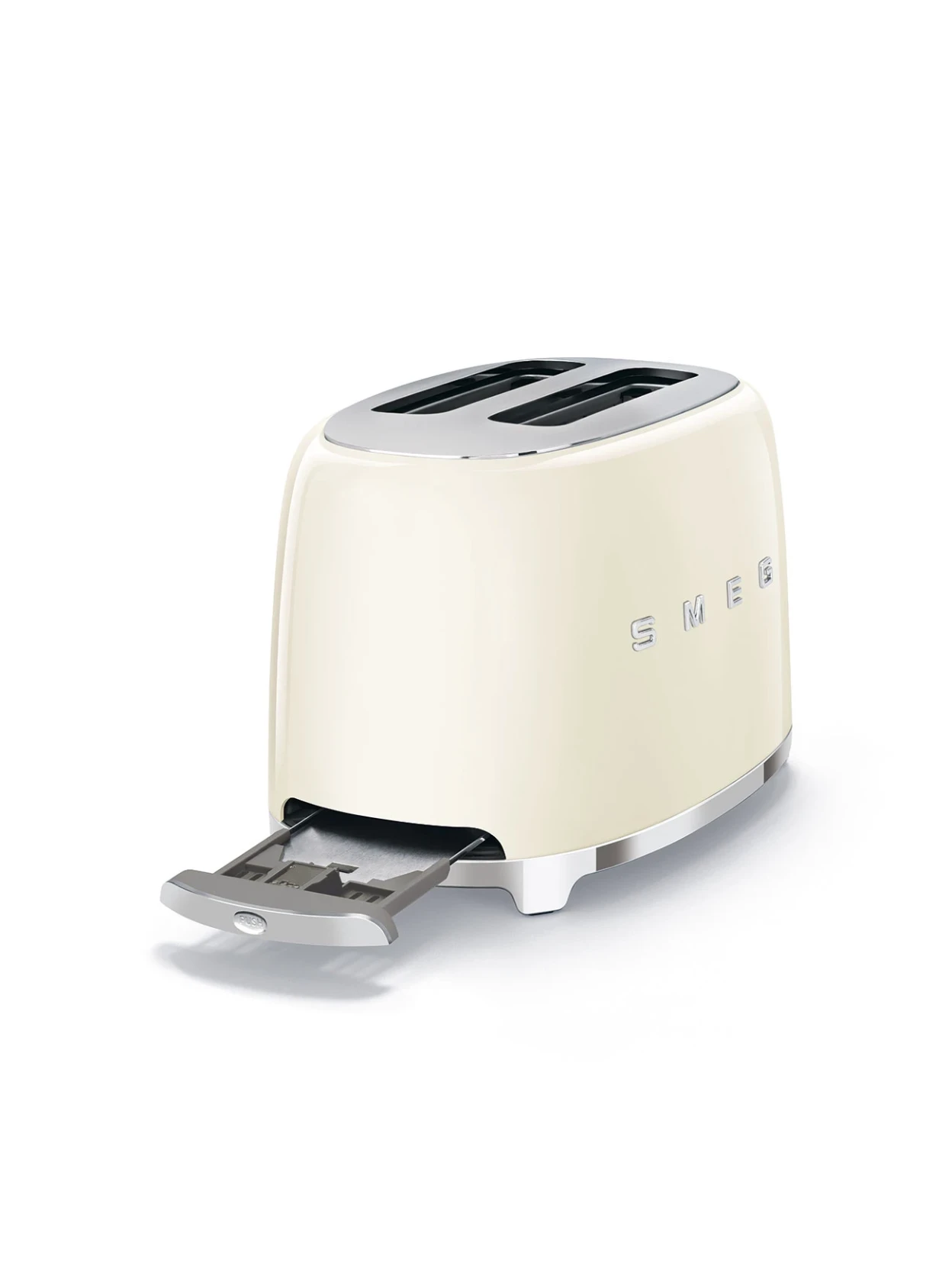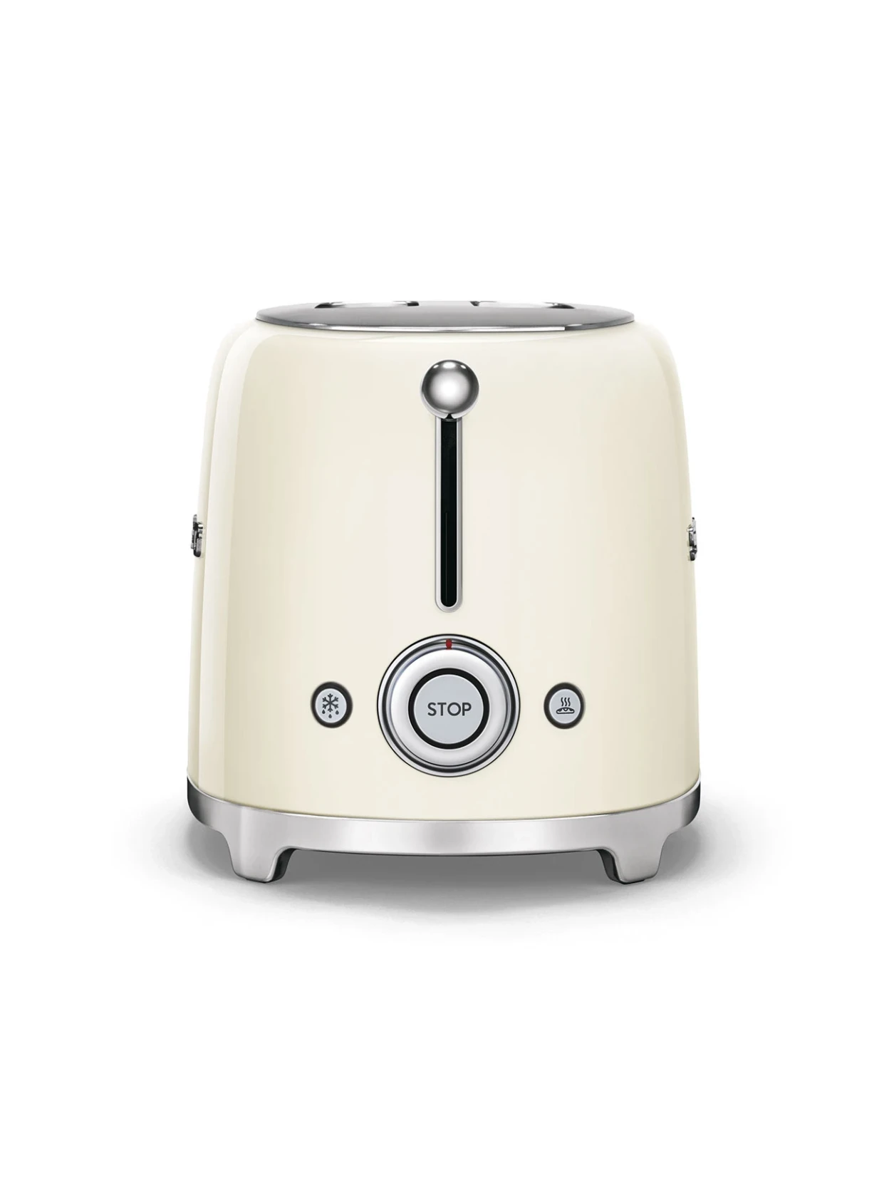 The Smeg 2-slice toaster in a glossy cream finish combines the retro charm of the 50's style with modern functionality. With 6 browning levels, defrost, reheat and bagel functions, automatic ejection and centered compartments, it offers perfect, even toast every morning with style and brightness.