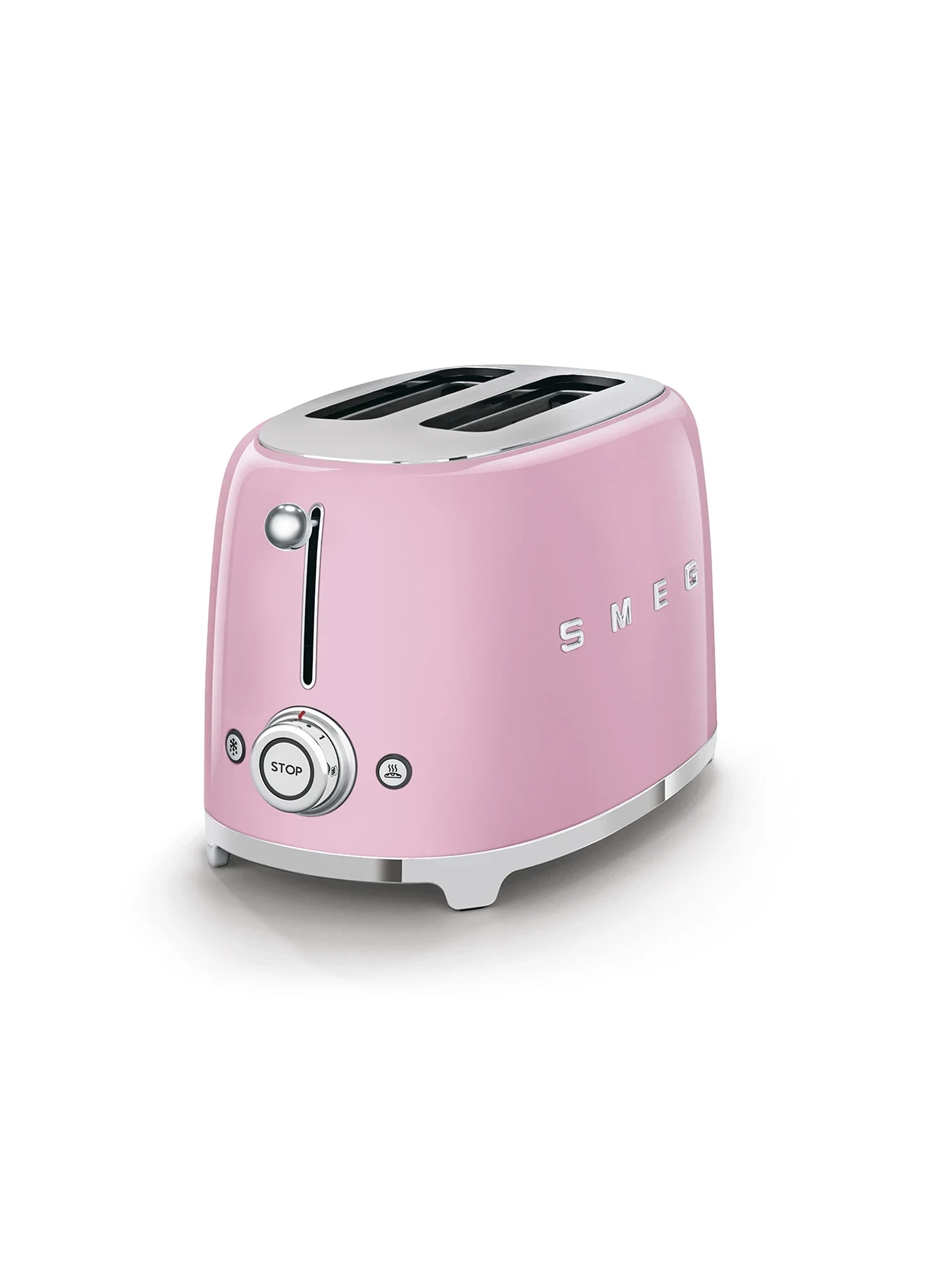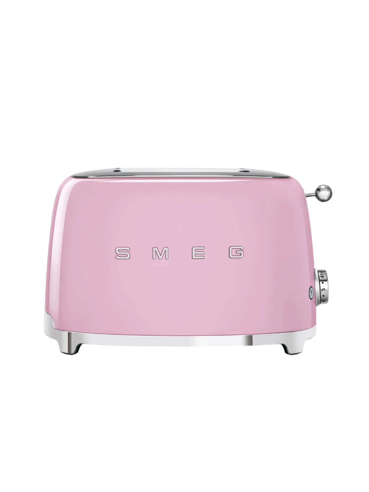 The Smeg 2-Slice Toaster in glossy pink combines the retro charm of 50s style with modern functionality. With 6 browning levels, defrost, reheat, and bagel functions, automatic ejection, and centered slots, it guarantees perfect, even toast every morning, adding a touch of style and color to your kitchen.