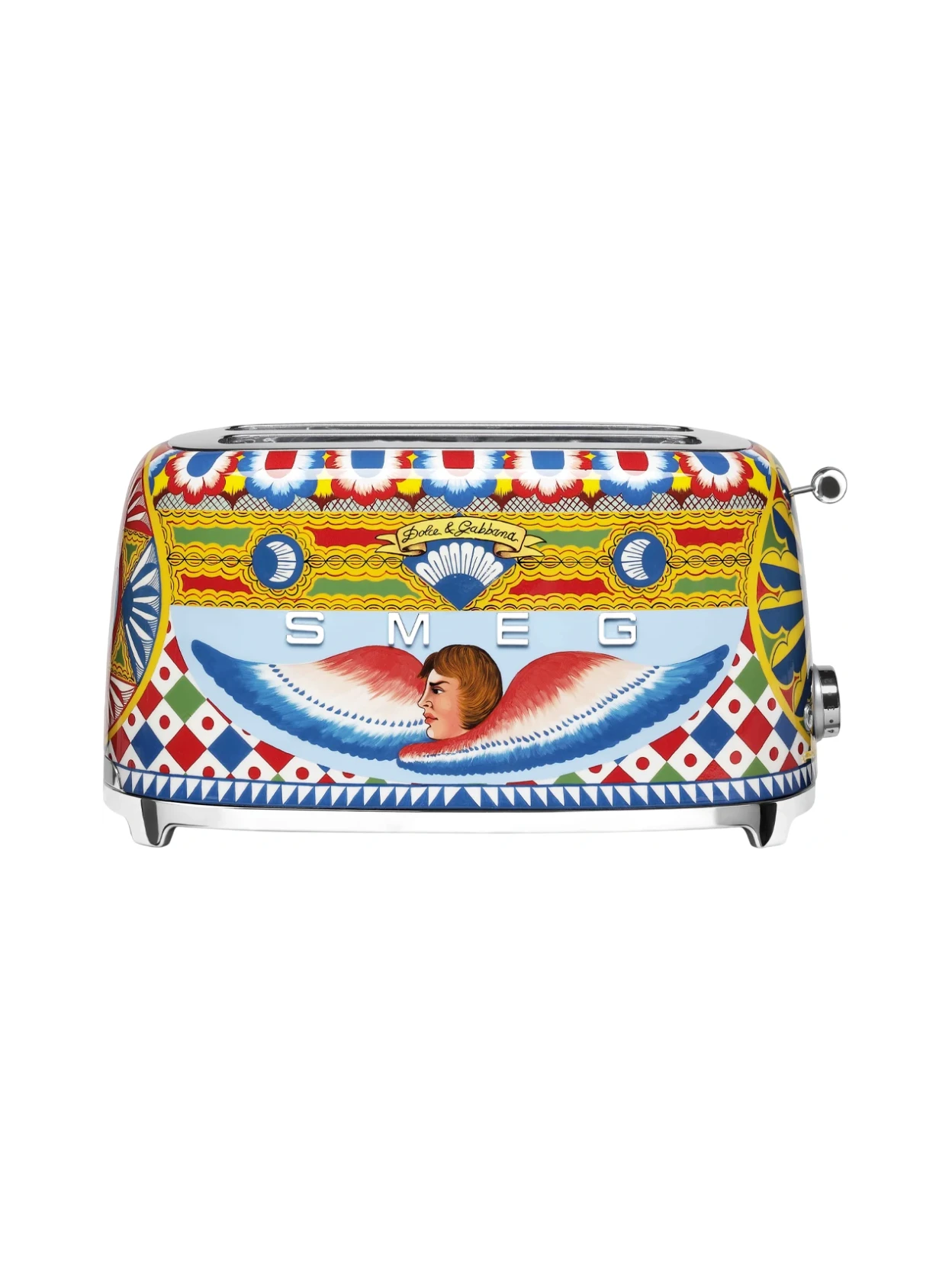 The Smeg Sicily is my Love toaster, decorated by Dolce & Gabbana, features two slots, six browning levels, defrost, reheat, and bagel functions, automatic ejection, and a crumb tray. An iconic appliance that combines artistic design and excellent performance.