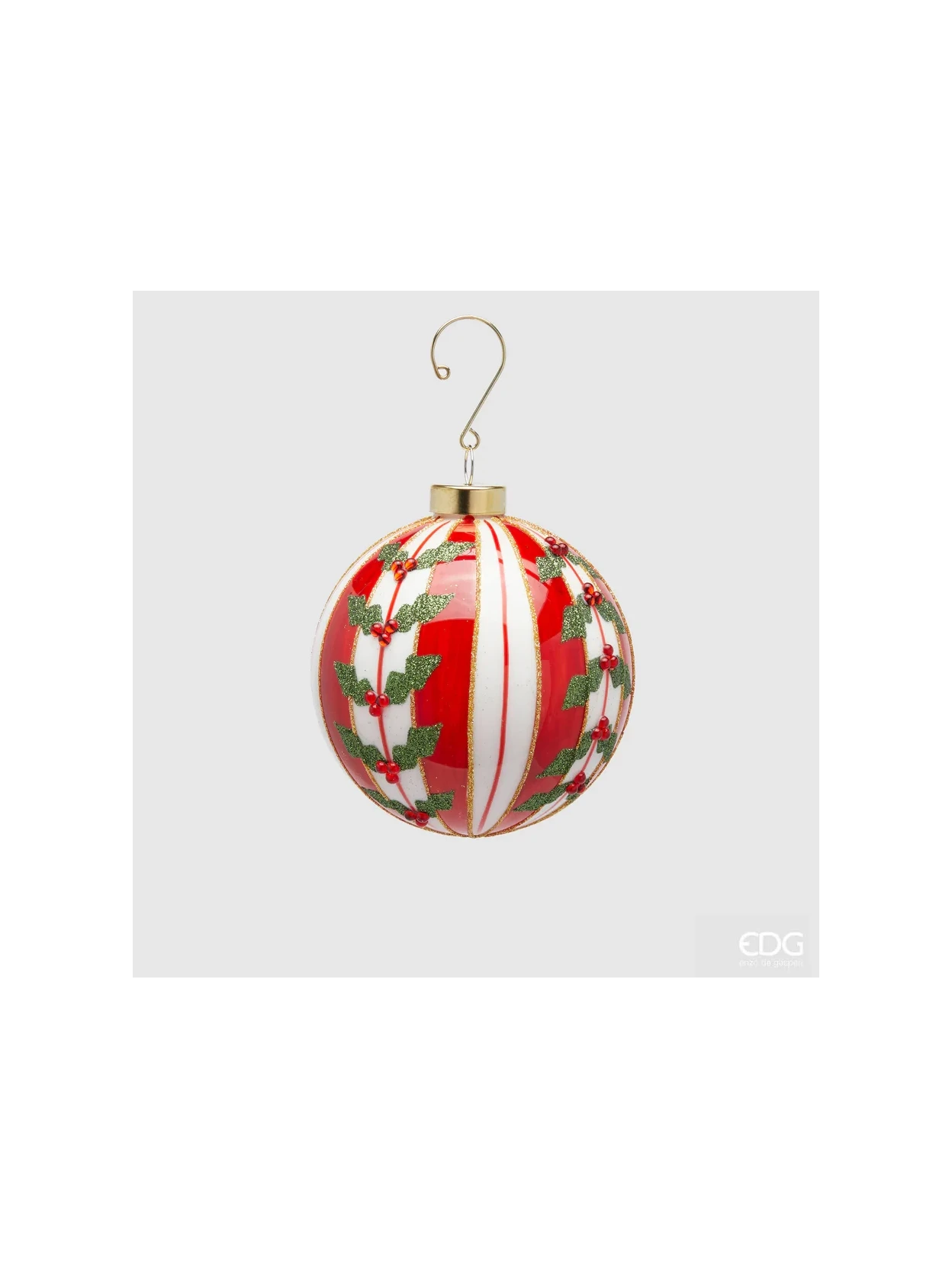 Rendi il tuo Natale ancora più magico con questa splendida pallina di Natale Ø 10 cm. Il suo design classico a righe bianche e rosse è impreziosito da un elegante dettaglio di agrifoglio, simbolo di festa e buona fortuna. Questa decorazione è perfetta per chi ama lo stile natalizio tradizionale: illumina l’albero e si abbina facilmente ad altri addobbi. Realizzata con cura e materiali di qualità, diventerà un elemento prezioso della tua collezione natalizia anno dopo anno.