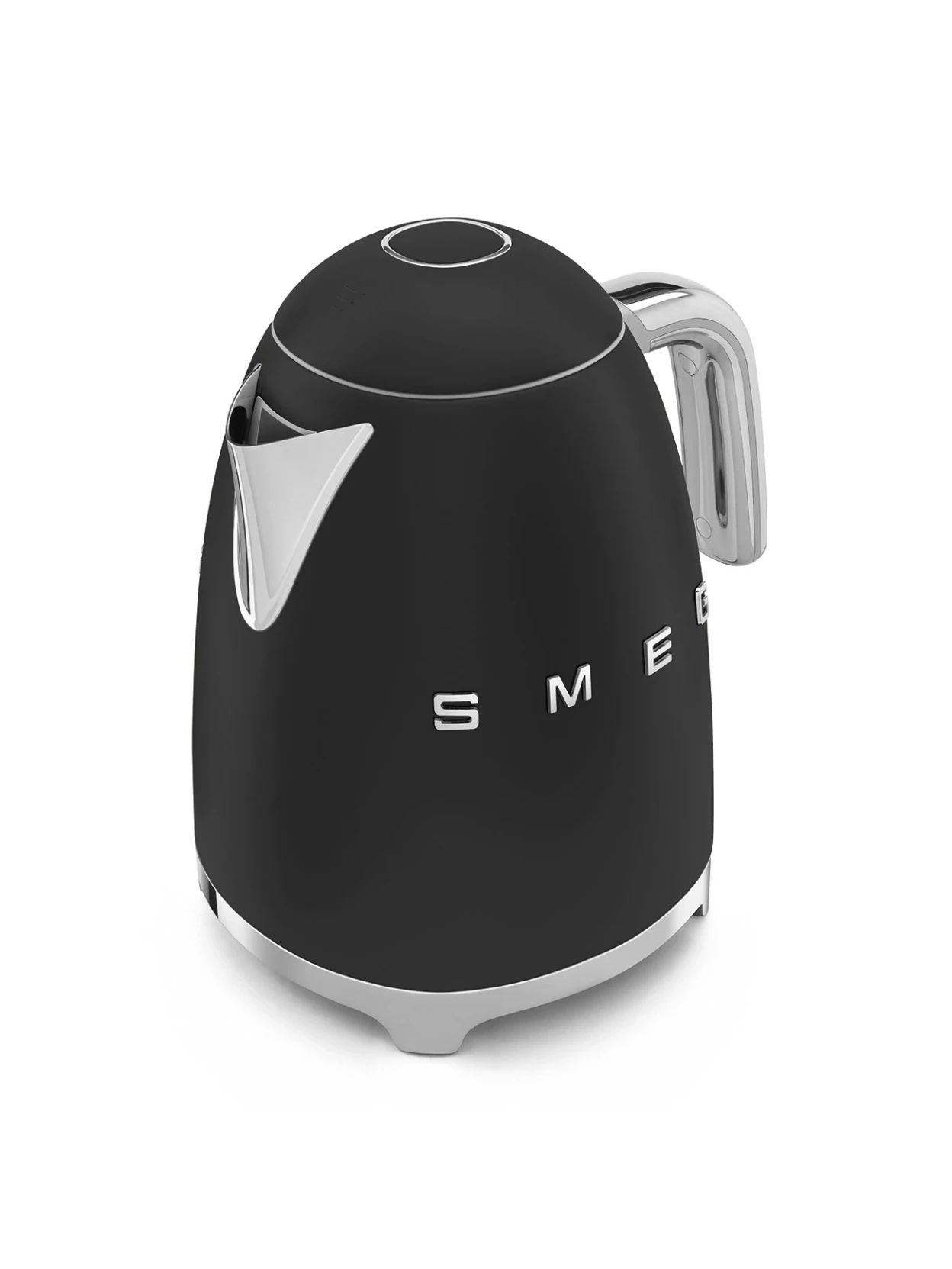 Il bollitore elettrico Smeg 50’s Style nero opaco è la scelta ideale per chi desidera efficienza, comfort e un design senza tempo in cucina. Ispirato all’estetica anni ’50, con finitura opaca nera e dettagli cromati, diventa un vero elemento d’arredo, perfetto da lasciare a vista sul piano cucina. Con una capacità di 1,7 litri, consente di preparare fino a sette tazze, rendendolo ideale per la colazione, il tè delle cinque o una pausa rilassante in qualsiasi momento della giornata.