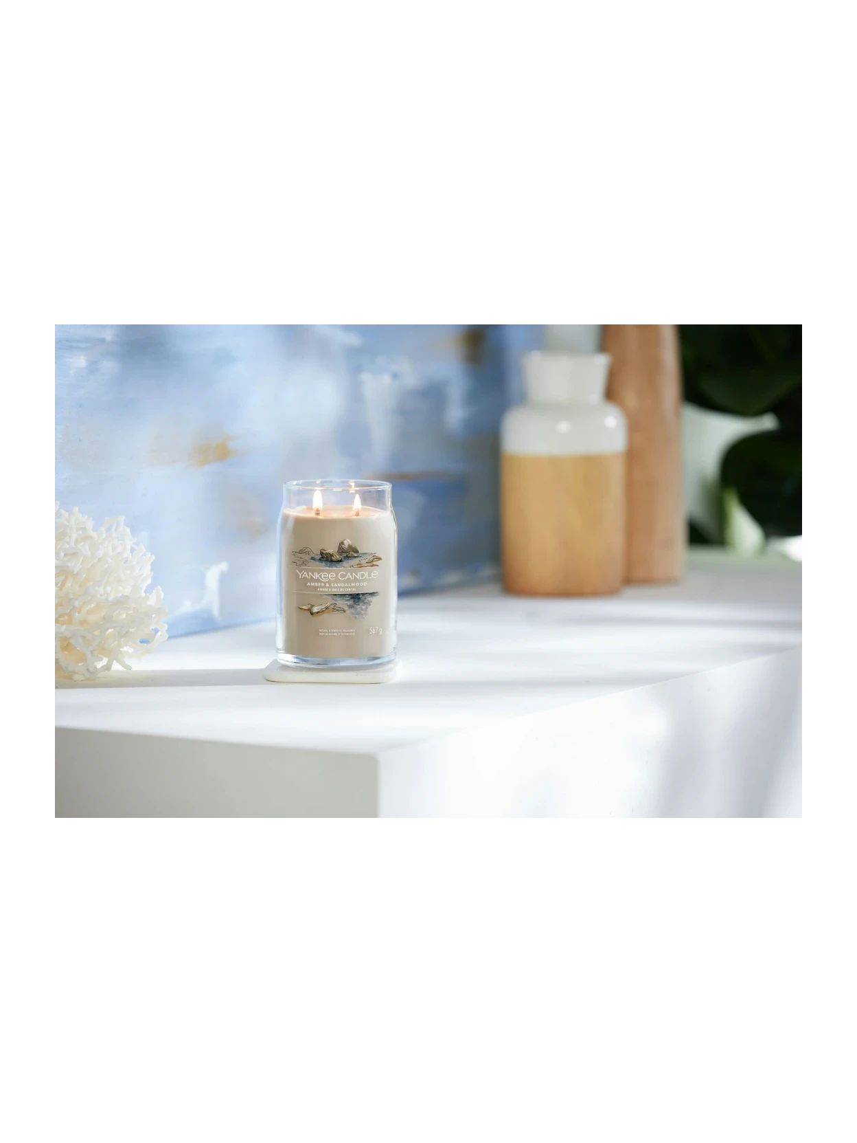 Amber & Sandalwood di Yankee Candle è una candela in giara grande dalla fragranza dolce e speziata che evoca calma, natura e libertà. Lasciati avvolgere dal calore di una spiaggia isolata, dove la sabbia baciata dal sole incontra le note rilassanti del legno trasportato dal mare, del cardamomo e dell’ambra. Amber & Sandalwood apre con accenti vivaci di pepe e cardamomo, seguiti da un cuore morbido di ambra vellutata e lavanda. Le note di fondo, calde e avvolgenti, combinano sandalo, legno di cedro e un delicato tocco di vaniglia, creando un’atmosfera serena e accogliente.
