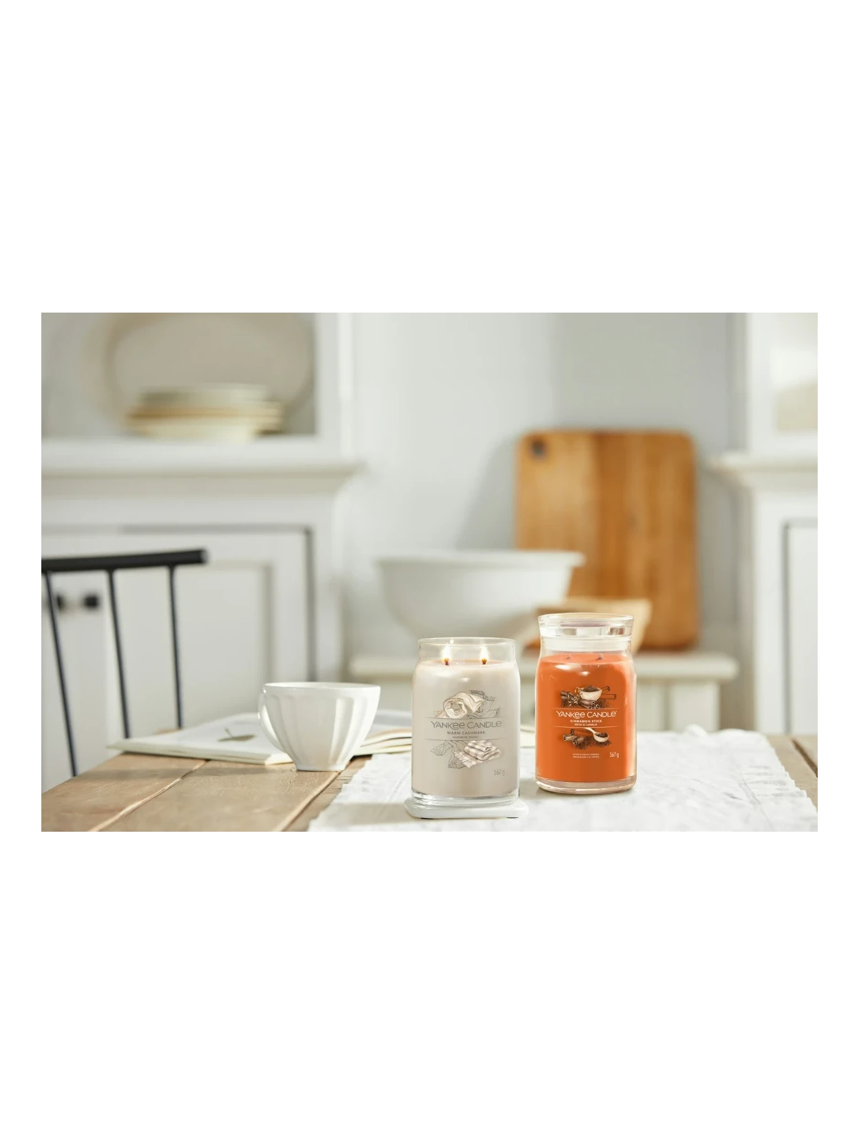 La nuova giara Signature da 567g, con doppio stoppino e miscela di cera di soia premium, garantisce una profumazione intensa e duratura fino a 80 ore. Il design è stato rinnovato con etichette illustrate a mano e colori vivaci, trasformando ogni candela in un dettaglio decorativo che porta stile e atmosfera nella tua casa.