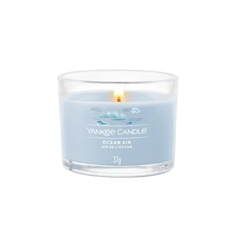 Ocean Air di Yankee Candle è una candela votiva in vetro che cattura l’essenza di un pomeriggio perfetto al mare: l’aria salmastra e cristallina si intreccia con note ozonate che evocano pulizia e libertà. Il cuore fiorito di gelsomino dona un tocco delicato e raffinato, mentre l’ambra bianca e il legno di sandalo avvolgono i sensi in una scia calda, morbida e rilassante. Un’esperienza olfattiva rigenerante, che trasforma ogni ambiente in un rifugio costiero senza tempo.
