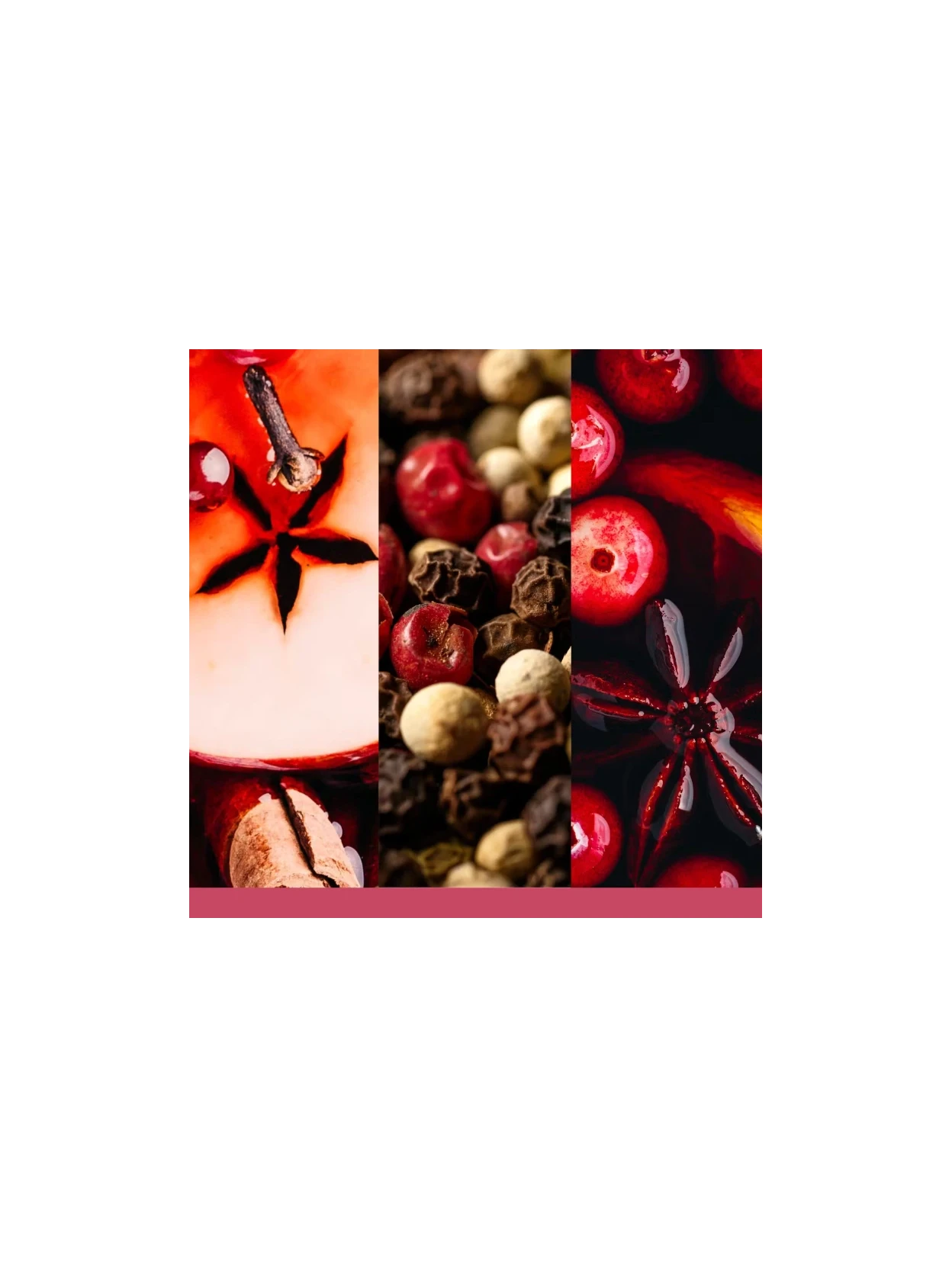 - Note di fondo: accordo di vin brulé, vaniglia, legni caldi