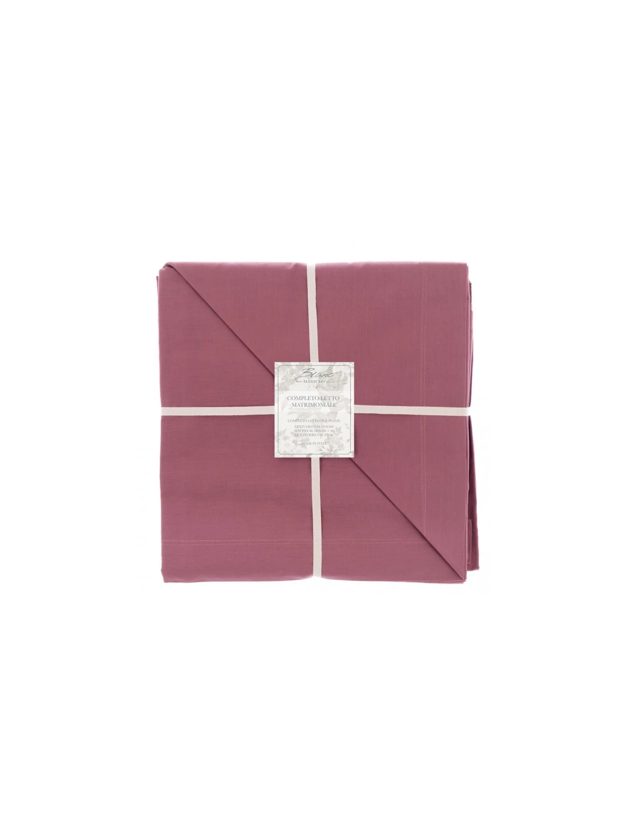Set completo con copriletto 245x300 cm, lenzuolo 180x200 cm e 2 federe 50x80 cm. Realizzato in 100% cotone italiano (Made in Italy), unisce morbidezza e qualità in un elegante colore cipolla.