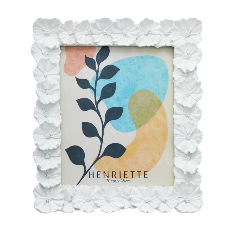 La Cornice Ibisco Bianco Ostuni di Henriette unisce eleganza e stile senza tempo. Realizzata in resina bianca, valorizza le tue foto o immagini preferite con un tocco di raffinatezza, rendendo ogni ambiente luminoso e armonioso.