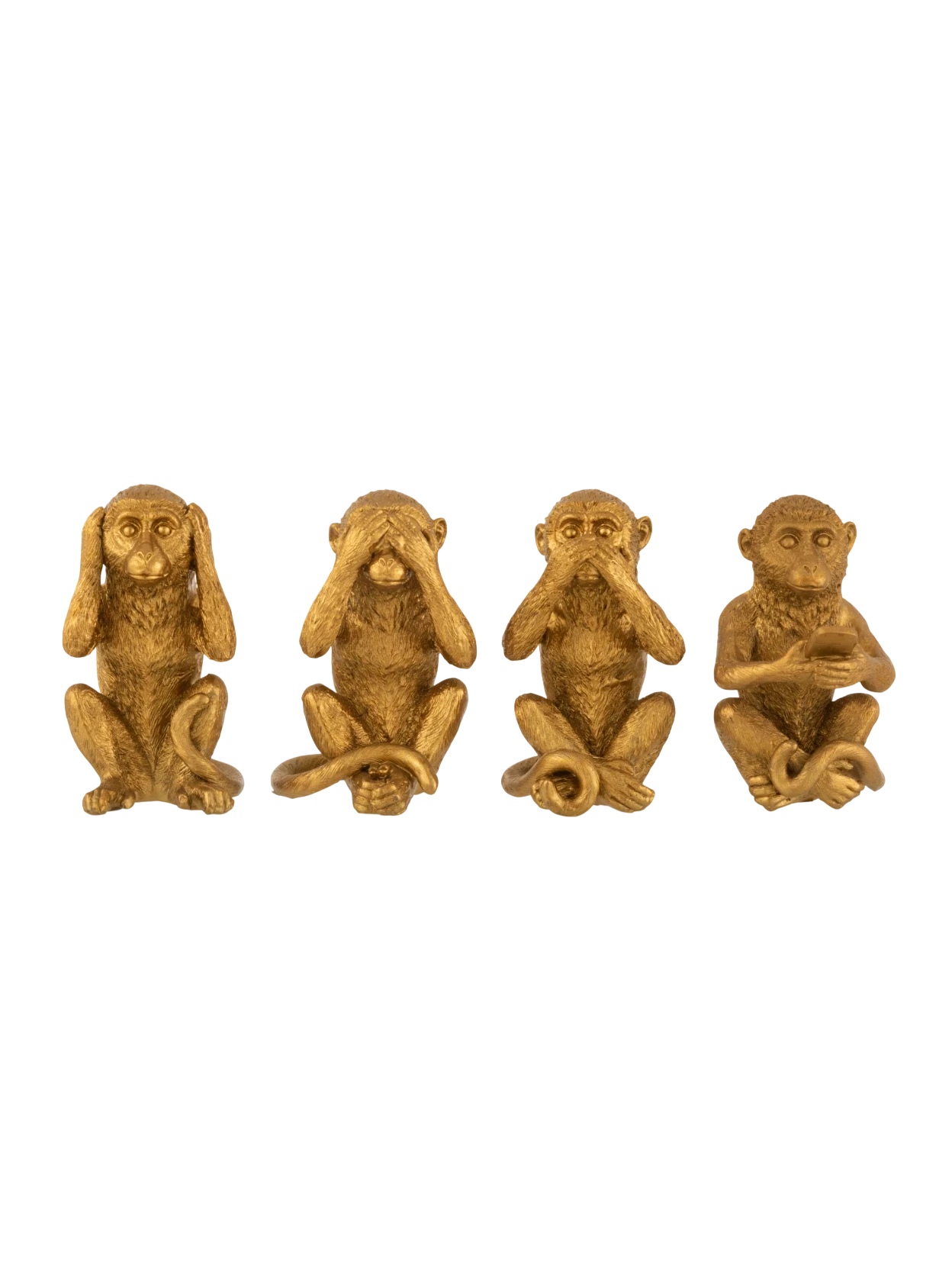 J-Line - Set 4 Pezzi Scimmia Sentire / Vedere / Parlare / Cellulare - Oro
