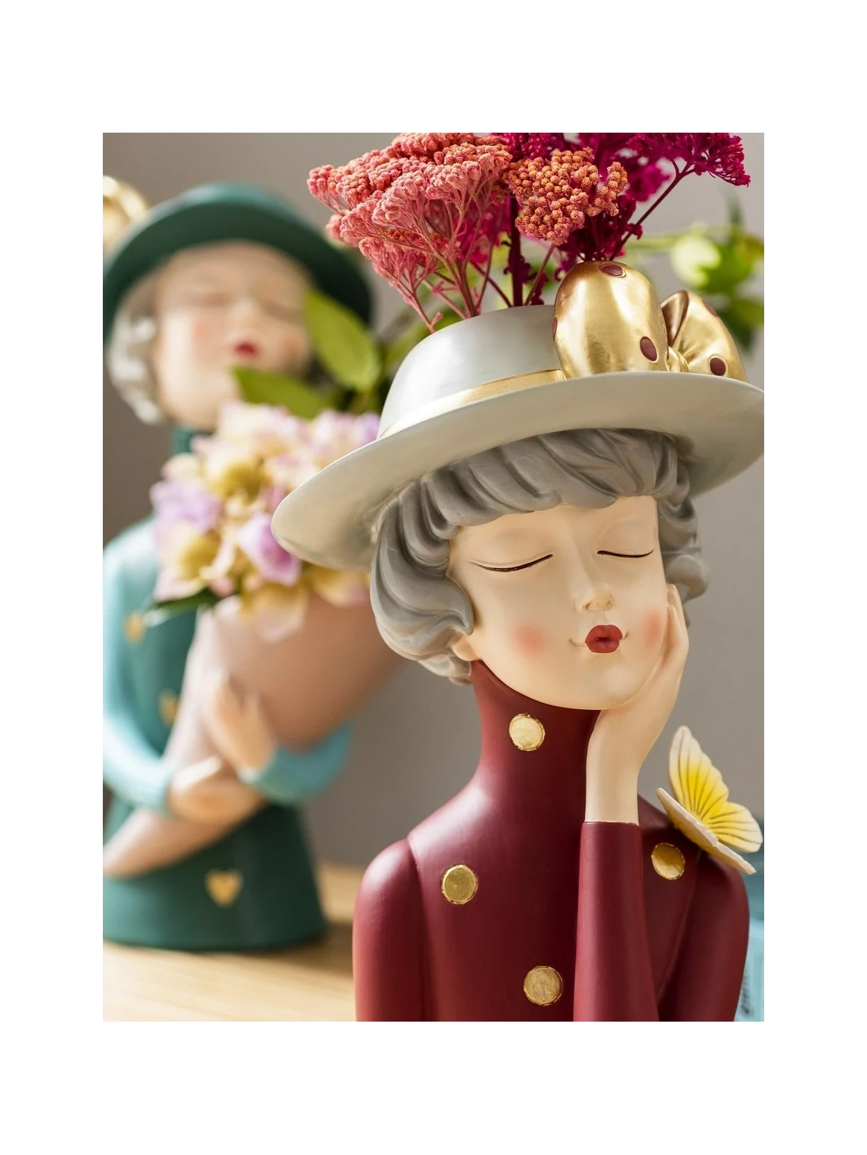La decorazione Mimì di Henriette della collezione Majorette è una raffinata scultura in resina dipinta a mano, alta 29 cm, che rappresenta un’elegante signora con la mano sul volto e una farfalla posata sulla spalla. Parte della collezione Majorette, questa creazione unisce arte e design con dettagli curati e colori delicati che ne esaltano la femminilità e l’espressività. Perfetta come elemento d’arredo per salotti, camere o studi, Mimì dona un tocco di charme e romanticismo agli ambienti, diventando un simbolo di bellezza, grazia e armonia senza tempo.