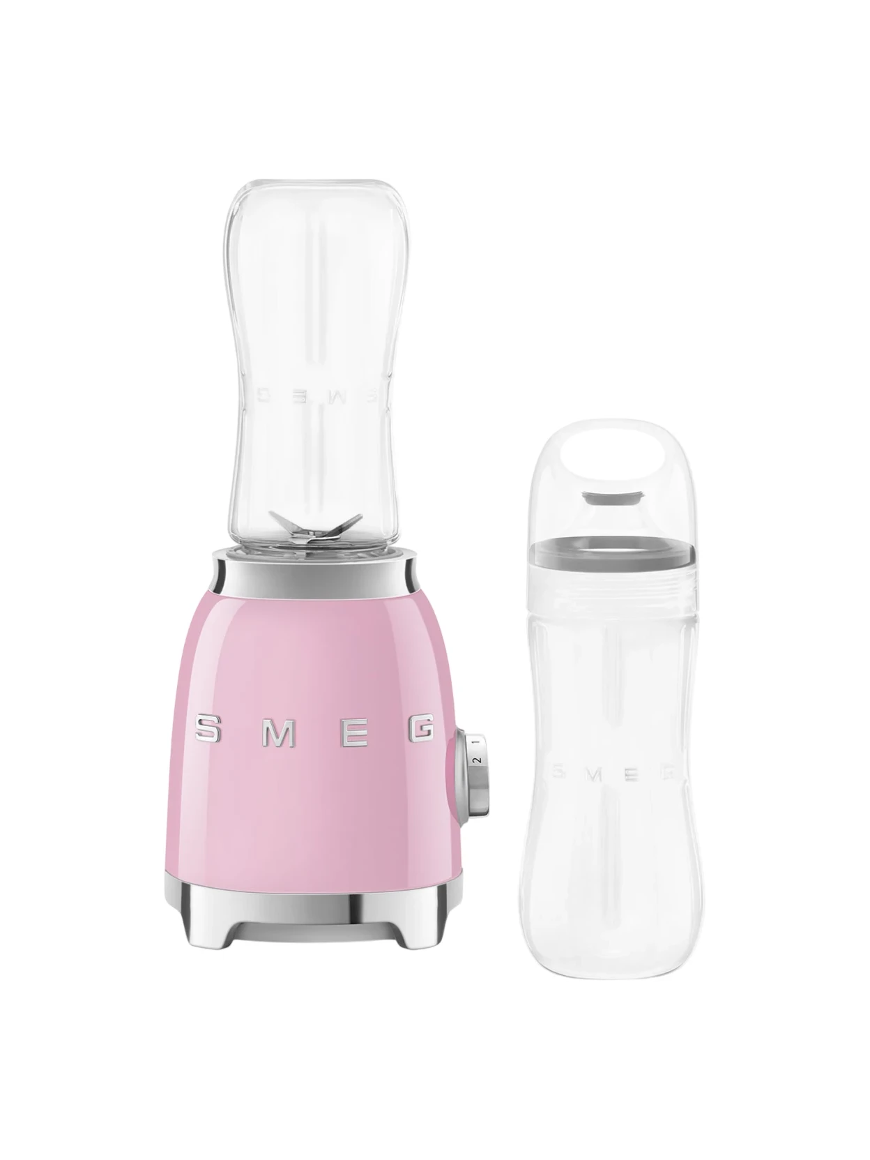 Il frullatore multifunzione compatto di Smeg in rosa è la soluzione ideale per preparare frullati sani e veloci da gustare anche fuori casa. Compatto, pratico e semplice da utilizzare, dispone di due velocità di lavorazione e include due bottiglie To-Go in Tritan™ Renew da 600 ml, perfette per smoothie e milkshake da portare sempre con te. Il design iconico Smeg in stile 50’s, nella delicata colorazione rosa, aggiunge un tocco di eleganza e personalità a ogni cucina.