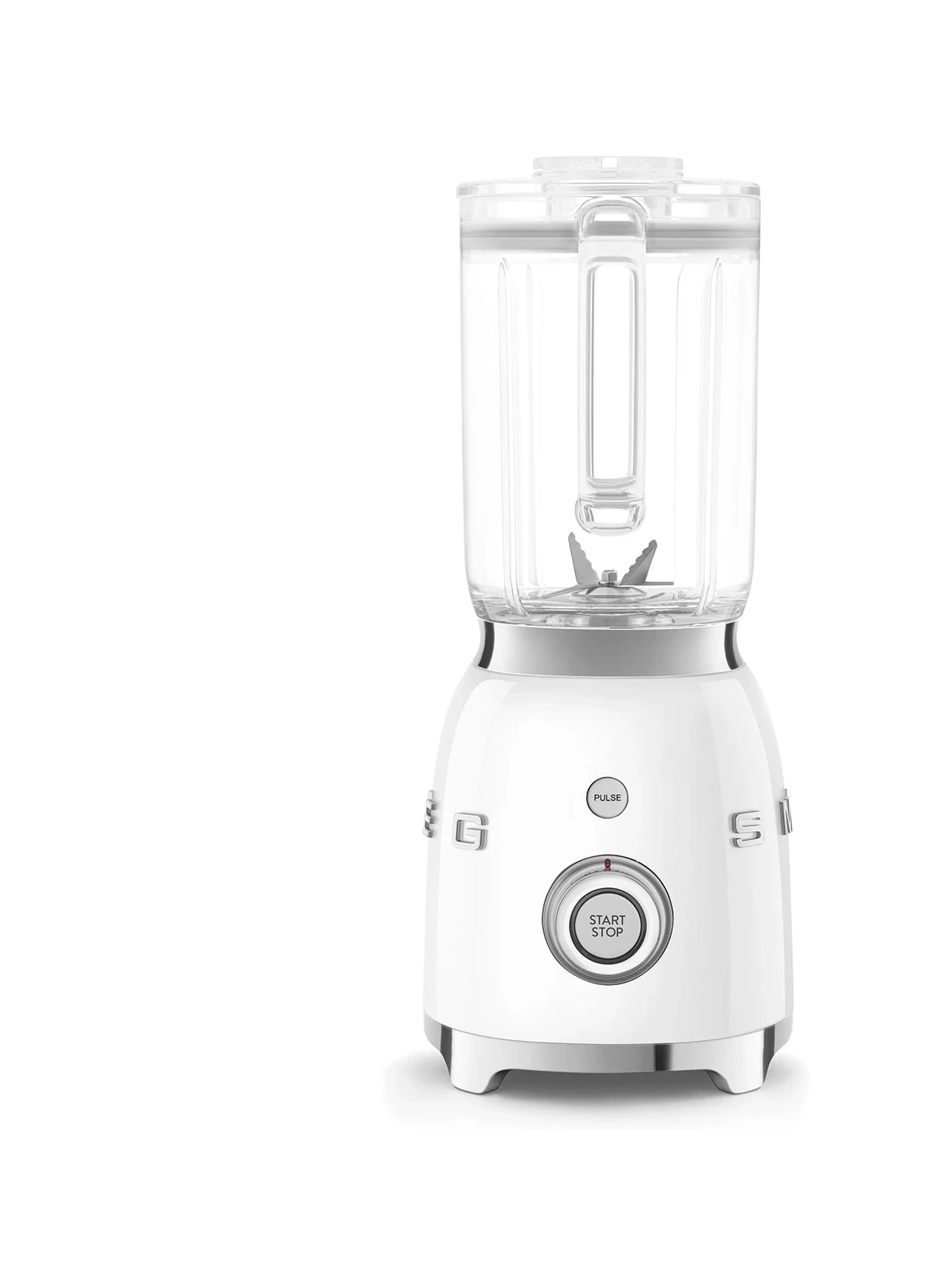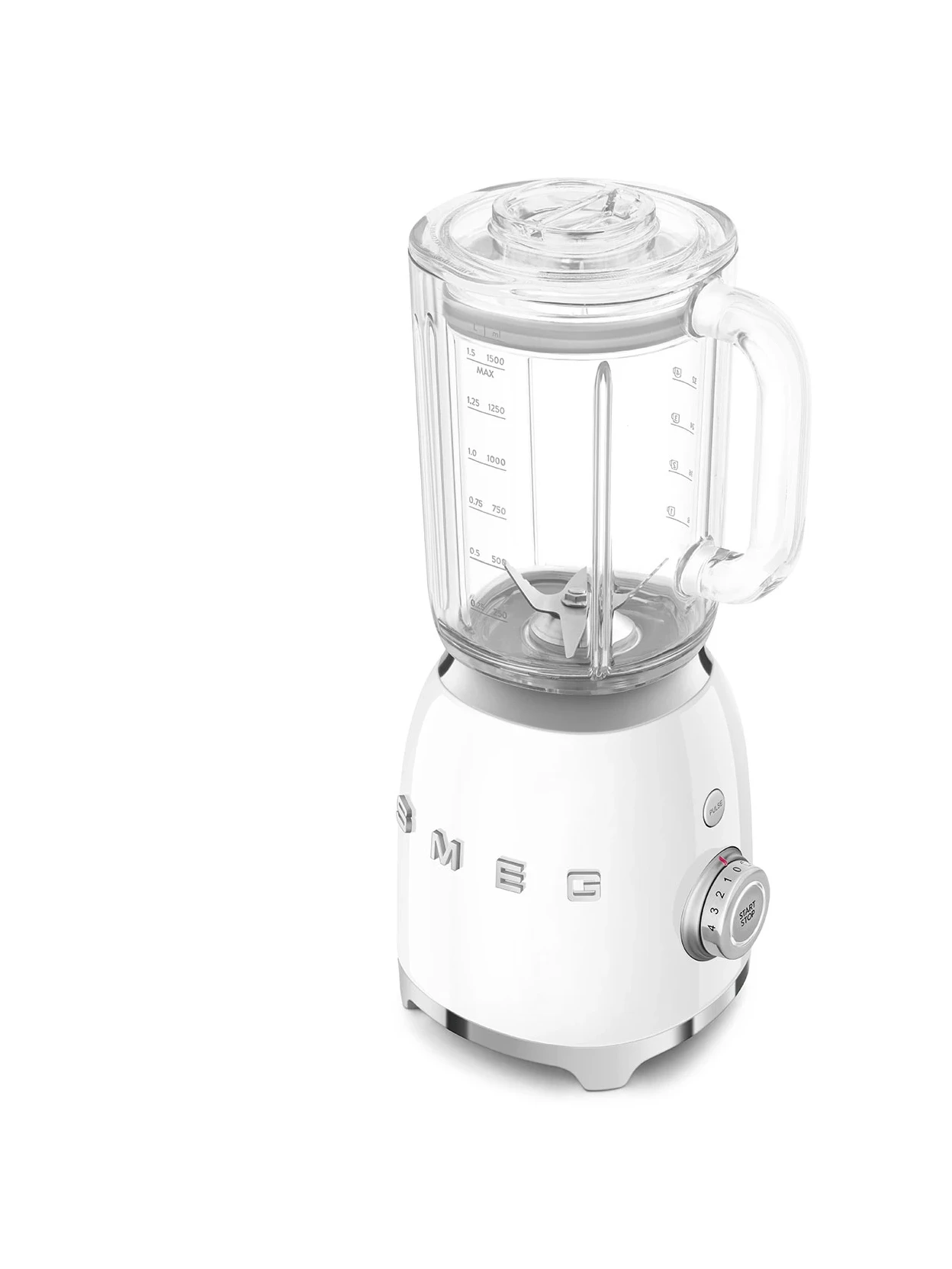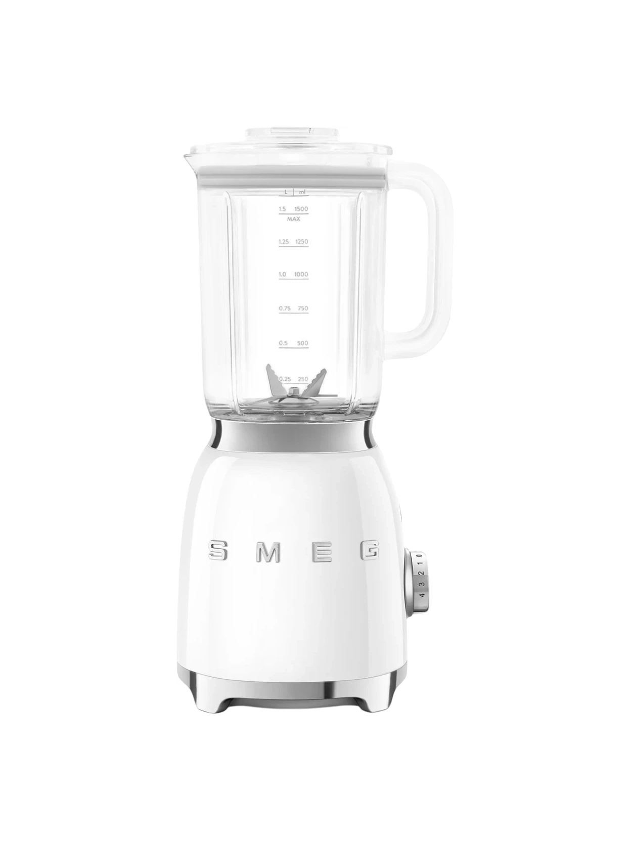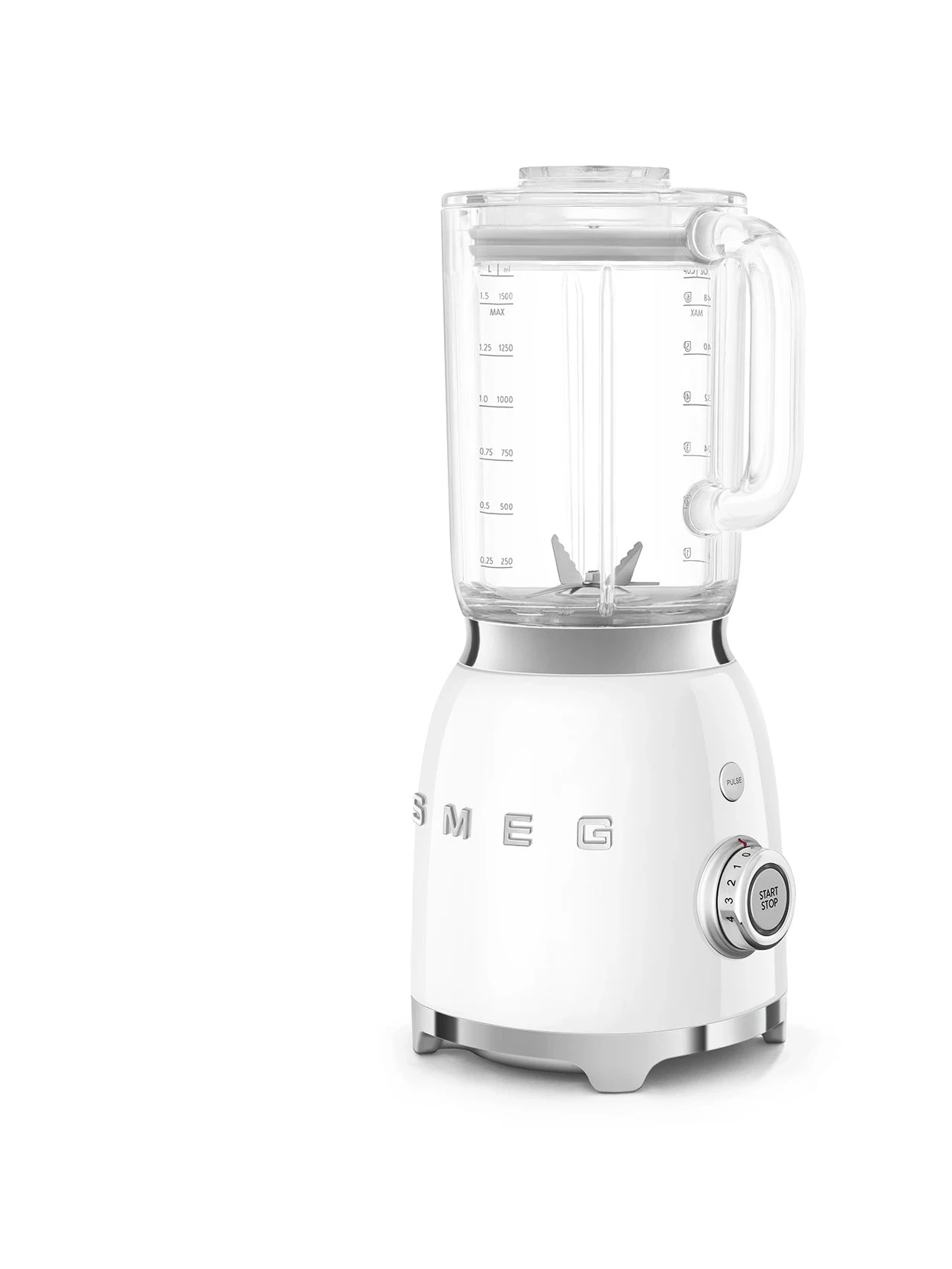 Il frullatore da tavolo di Smeg in bianco unisce prestazioni elevate e iconico design anni ’50. Dotato di motore da 800 W, quattro livelli di velocità e programmi automatici dedicati, è ideale per smoothie, frullati cremosi e ghiaccio tritato. La caraffa da 1,5 litri in Tritan™ Renew, la funzione Pulse e la pulizia automatica garantiscono risultati eccellenti e massima praticità in cucina, con tutto lo stile inconfondibile Smeg.