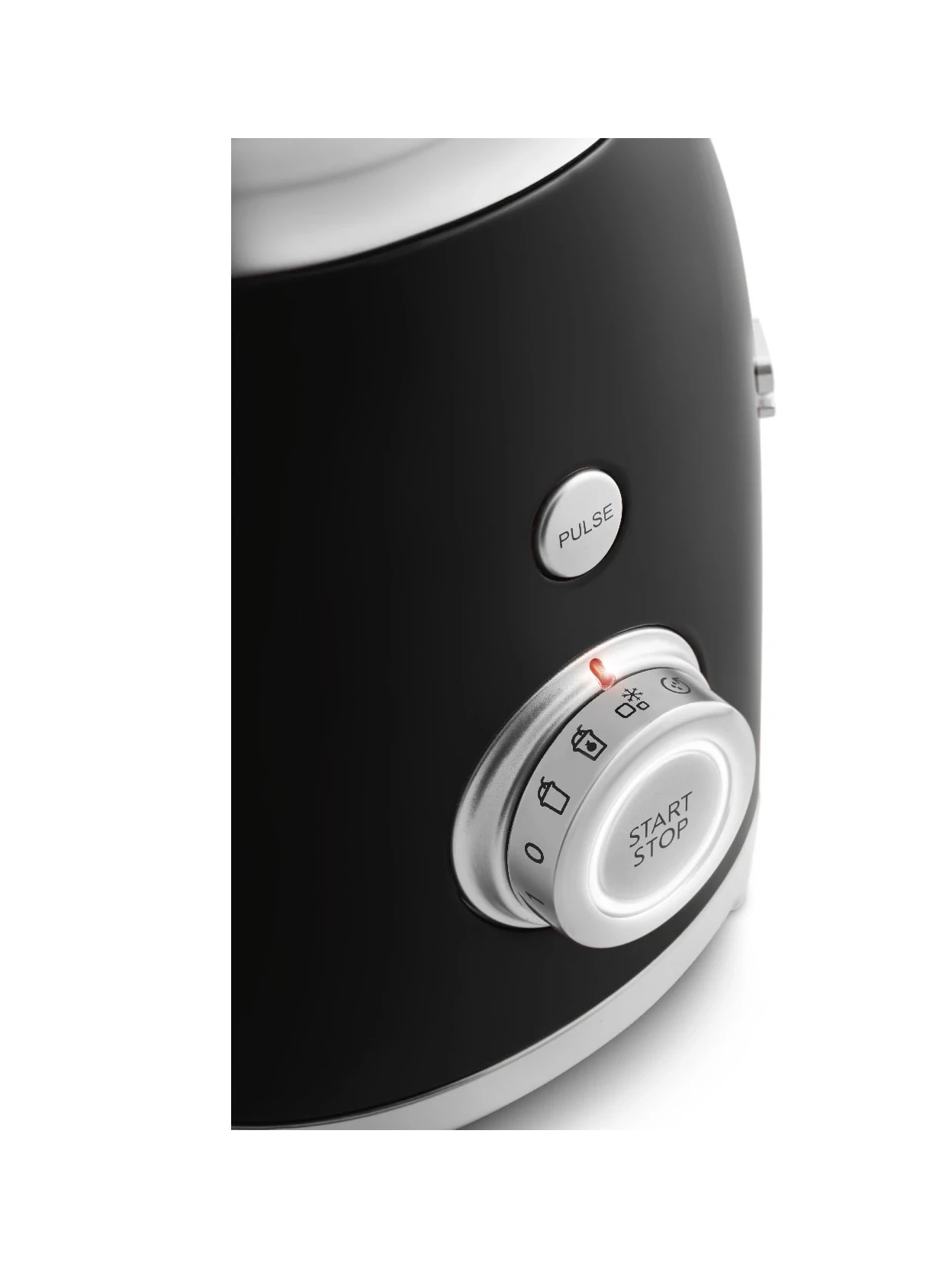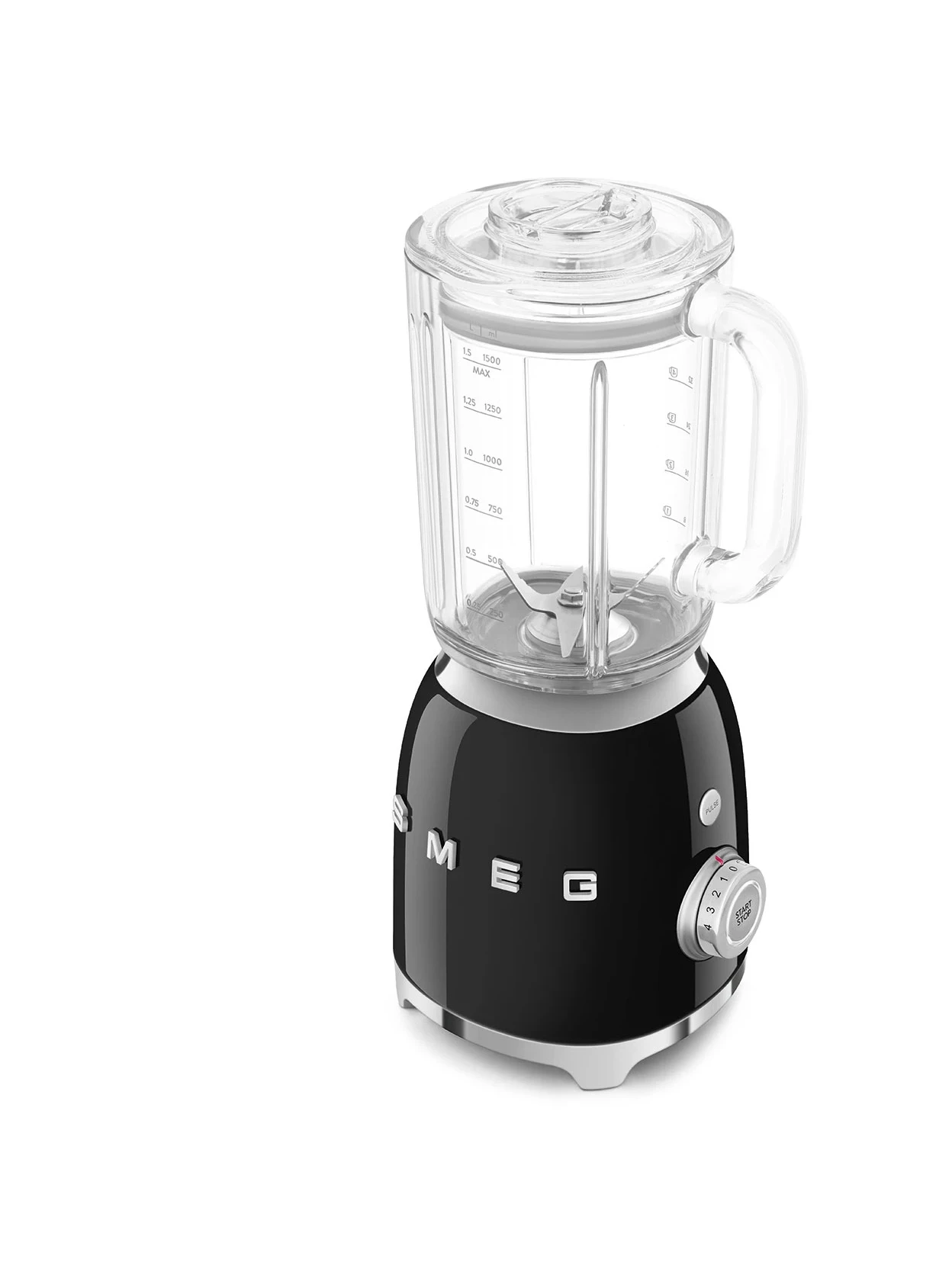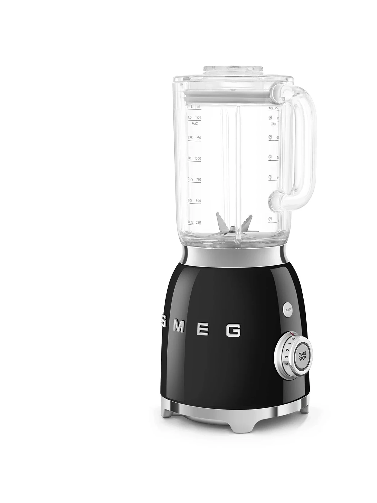 Frullatore Smeg Nero 50’s Style: carattere deciso e prestazioni professionali. Motore da 800W, 4 velocità, programmi Smoothie, Green Smoothie e Tritaghiaccio per risultati sempre perfetti. Caraffa da 1,5 L, lame in acciaio inox e funzione Auto Clean per una pulizia rapida.