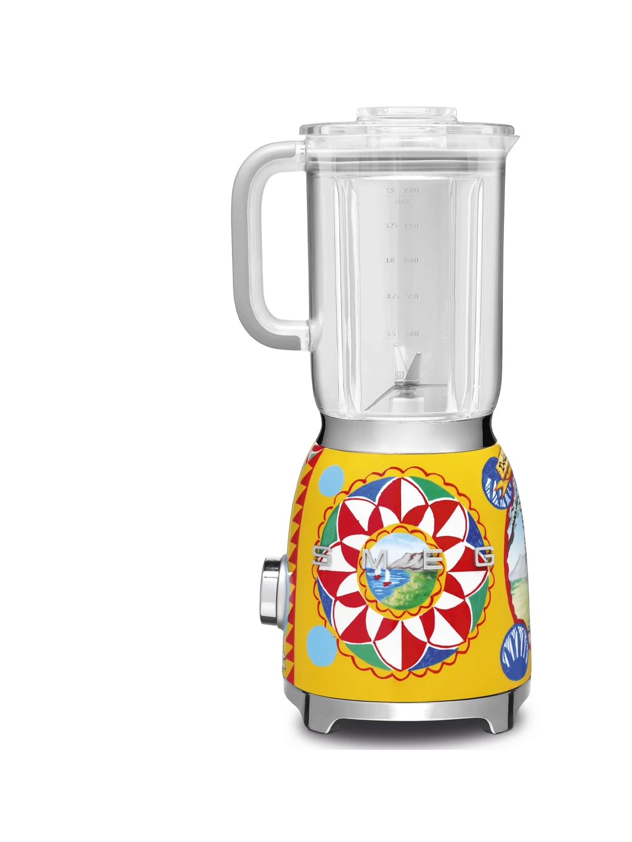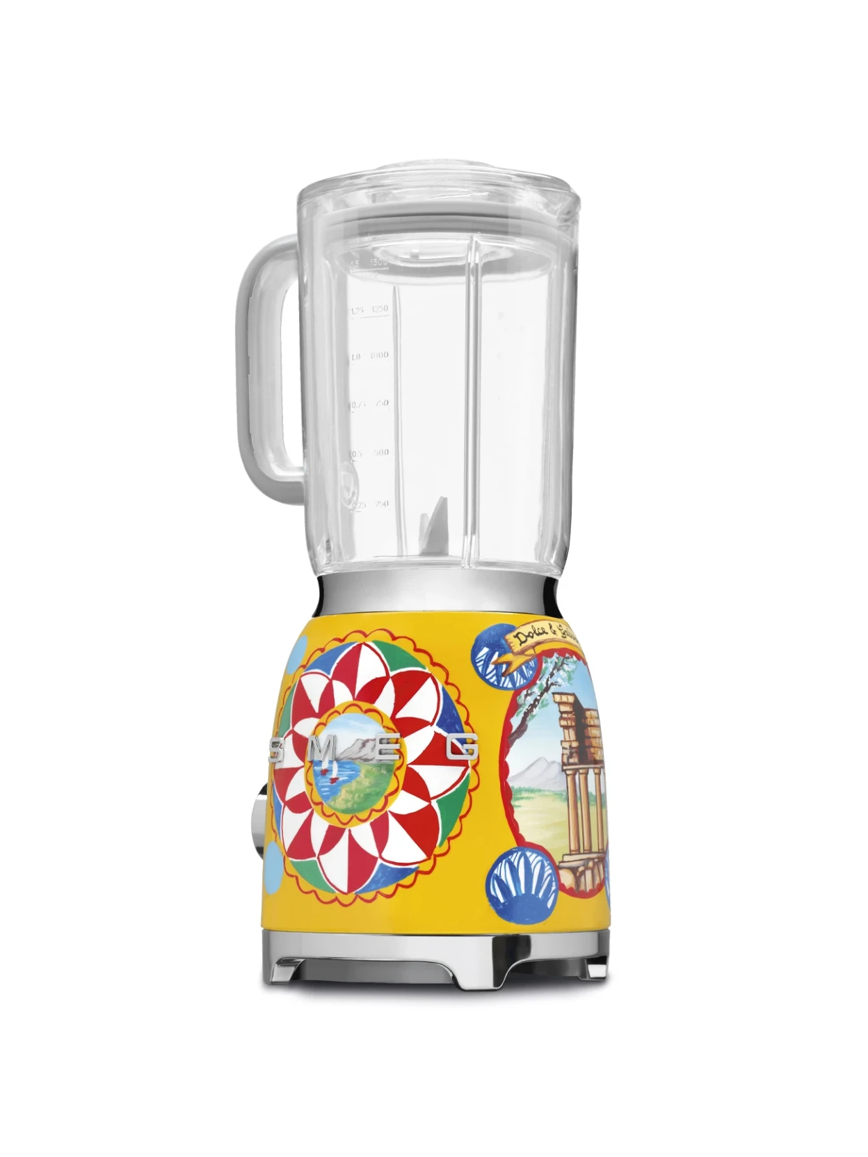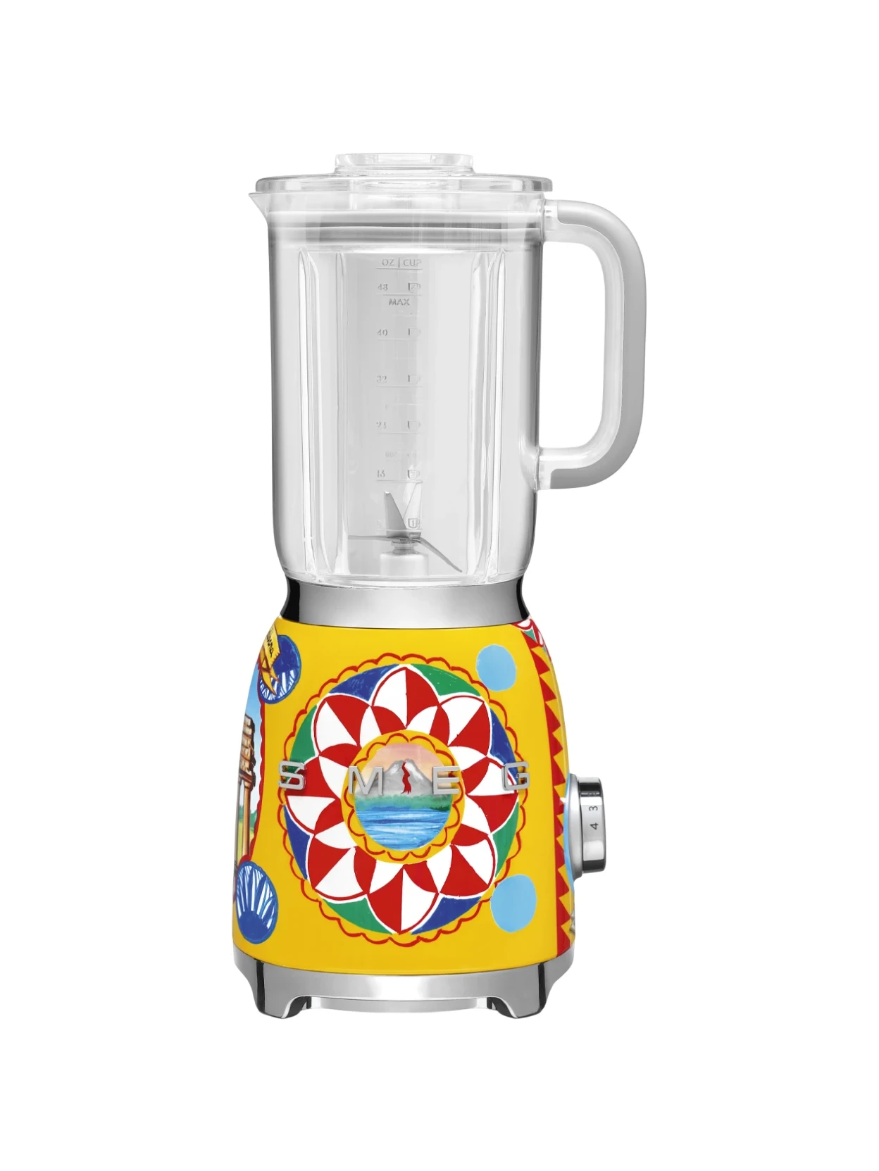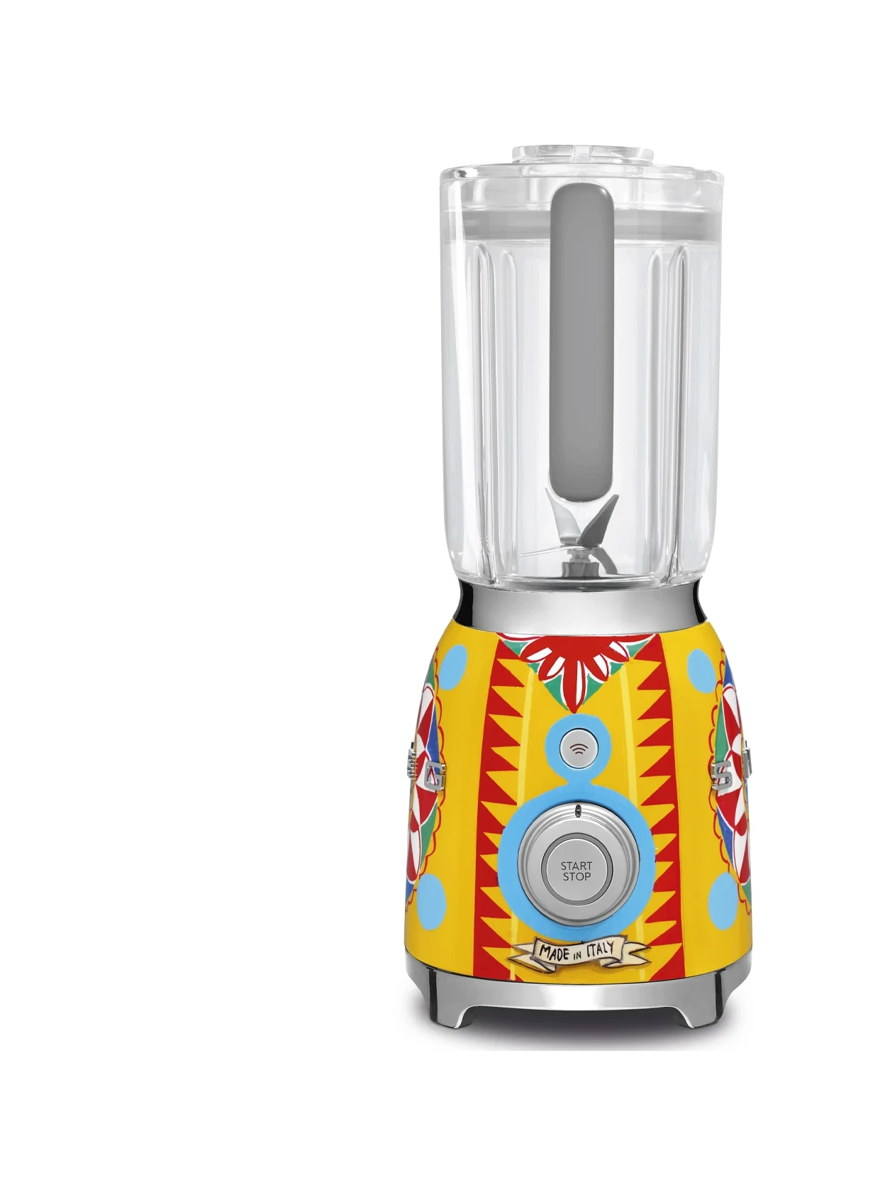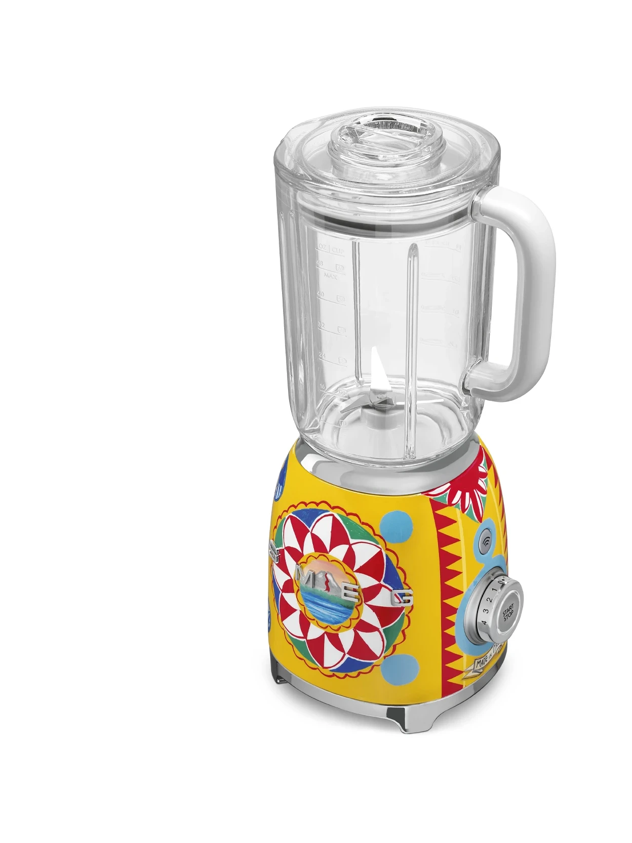 Frullatore da tavolo Smeg Sicily is my Love, decorazione artistica firmata Dolce&Gabbana, caraffa da 1,5 L, motore da 800 W, 4 velocità manuali, doppia lama in acciaio inox e stile 50’s Style. Un elettrodomestico esclusivo che unisce performance e arte.