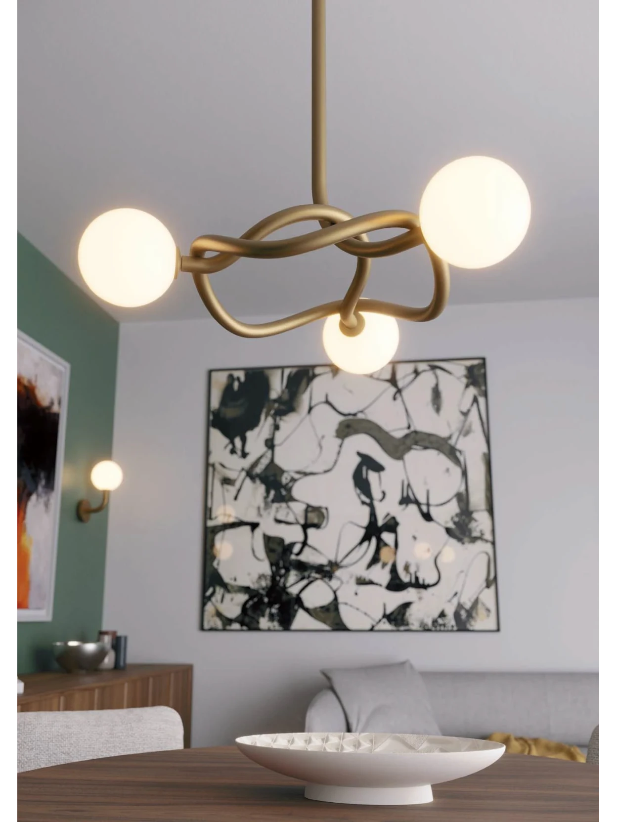 Confusio di Redo Group è una lampada a sospensione elegante adatta ad ambienti interni. Caratterizzata da una struttura in metallo verniciato oro opaco che accoglie 3 o 5 diffusori sferici realizzati in vetro soffiato bianco opalino. Una soluzione luminosa discreta ma d’effetto, ideale per valorizzare ingressi, corridoi e zone living.