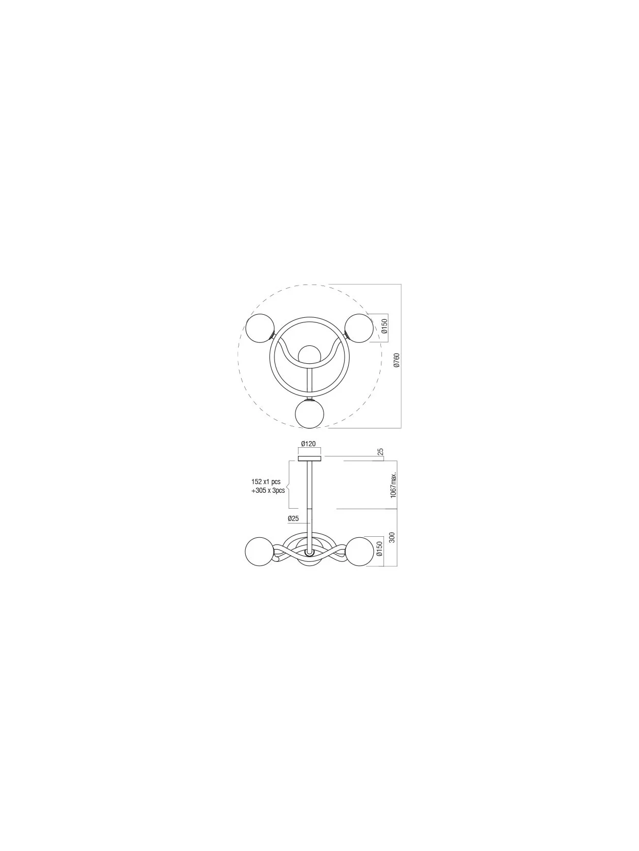 3 Diffusori Ø 76 x H 30 / 106.7 cm max attacco E14 3 x 28 W max