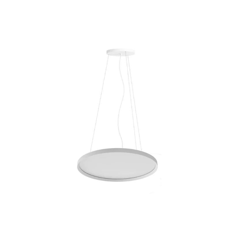 Dama di Redo Group è una lampada a sospensione LED  composta da un rosone  tondo per fissaggio a soffitto, cavi in acciaio e cover copricavi con struttura in metallo bianco opaco. Il diffusore LED è disponibile in versione non dimmerabile, dimmerabile DALI o dimmerabile TRIAC, e consente la regolazione della temperatura colore (3000K / 4000K / 5000K). Corpo in alluminio pressofuso verniciato a polveri, diffusore microprismatico in policarbonato con UGR<19. Elevata resa luminosa.