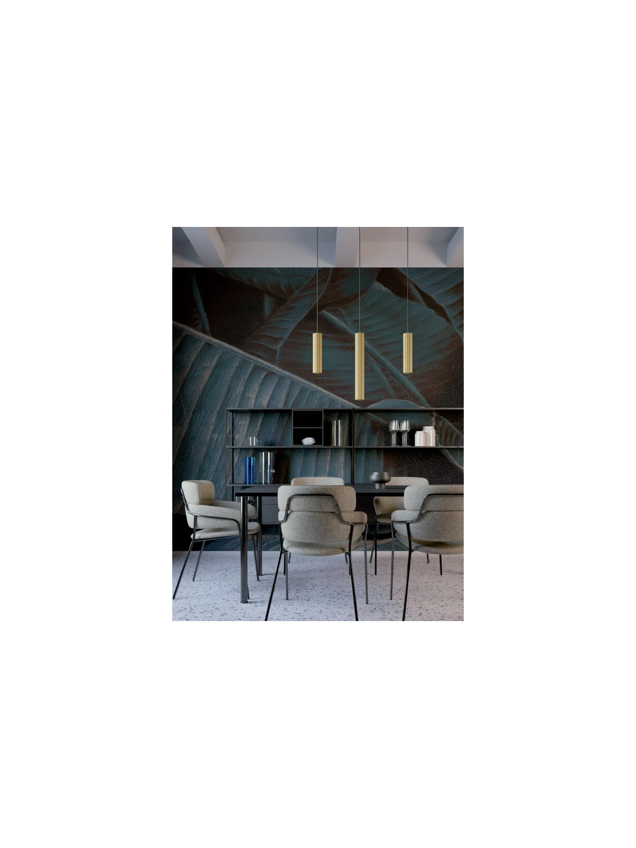 Delphi Redo Group è una lampada a sospensione dal design moderno, ideale per ambienti interni. La struttura in metallo e alluminio estruso presenta una finitura oro, nero o bianco opaco all’esterno e nero opaco all’interno, creando un elegante contrasto visivo. Utilizza una lampadina GU10 da max 7W, con tensione di ingresso 220-240V, 50/60Hz. Grado di protezione IP20 e classe I.