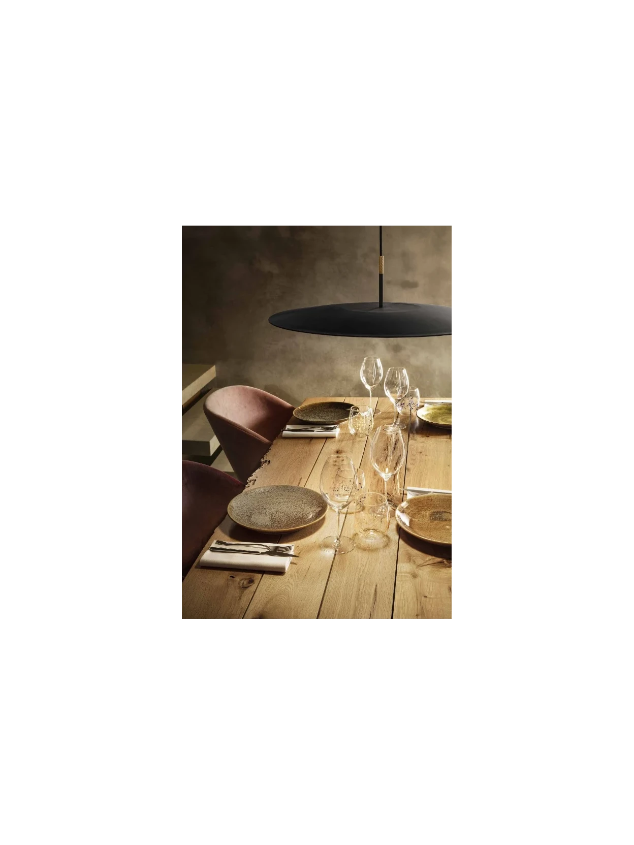 Overfly Plus di Olev: eleganza sospesa con luce concentrata e confortevole. Il design a sospensione con incisioni godronate e filtro anti-abbagliamento rende ogni tavolo da pranzo un’esperienza luminosa unica.