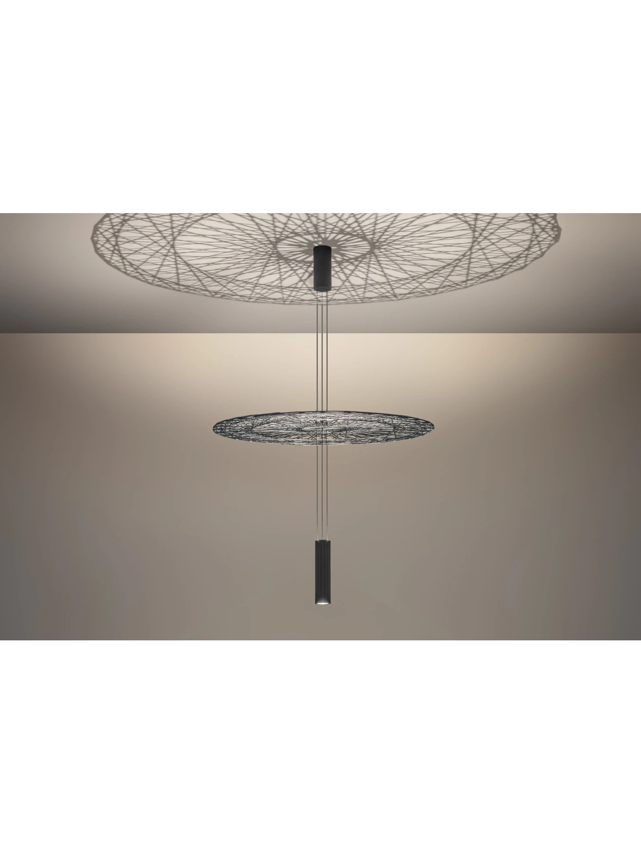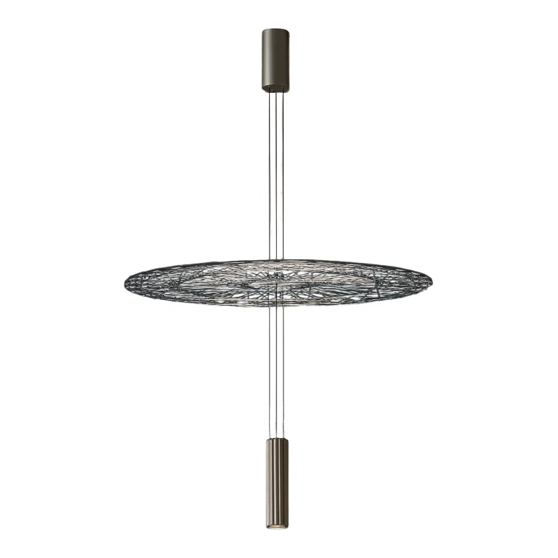 La versione Titanio della Likeshadow di Olev porta un carattere moderno e sofisticato in ogni ambiente. Realizzata con materiali pregiati come alluminio, ottone, ferro e fibra di carbonio, si distingue per l’equilibrio tra estetica tecnica e ricercatezza. La doppia emissione luminosa, direzionata verso il basso e verso il soffitto, attraversa il piatto in carbonio e proietta ombre geometriche dinamiche che arricchiscono lo spazio con un’atmosfera scenografica. Il paralume regolabile scorre lungo sottili fili strutturali e permette di modificare con facilità l’ampiezza e l’intensità delle ombre, adattando la luce al mood desiderato. Disponibile in tonalità 2700K o 3000K e in versione non dimmerabile o push/DALI, Likeshadow Titanio interpreta la luce come un elemento di design puro, contemporaneo e sorprendente.