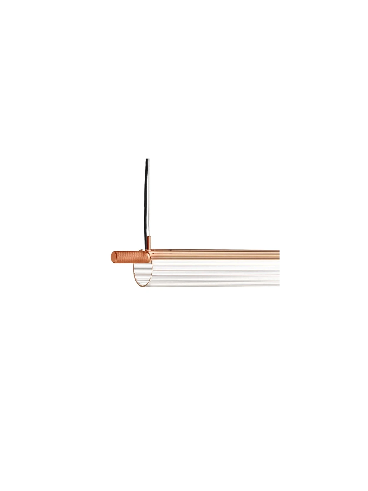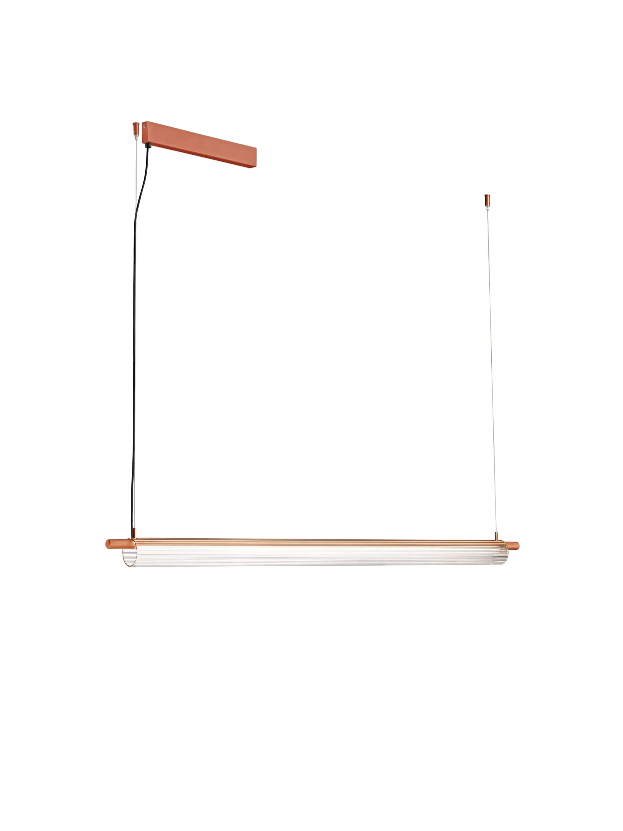 La versione Terra Bruciata della lampada a sospensione di Olev Trisel combina eleganza e calore materico per un’illuminazione raffinata. Lo stelo in metallo verniciato a mano nella finitura terra bruciata si abbina al paralume in vetro borosilicato lavorato artigianalmente, caratterizzato da sottili righe scanalate che diffondono la luce in modo morbido e accogliente. I terminali metallici con dettagli zigrinati aggiungono un tocco distintivo e testimoniano la cura artigianale del design. Trisel Terra Bruciata è perfetta per illuminare tavoli da pranzo o spazi residenziali e commerciali, con LED interno che offre una luce uniforme e compatibile con sistemi di dimmerazione per creare l’atmosfera ideale in ogni momento.