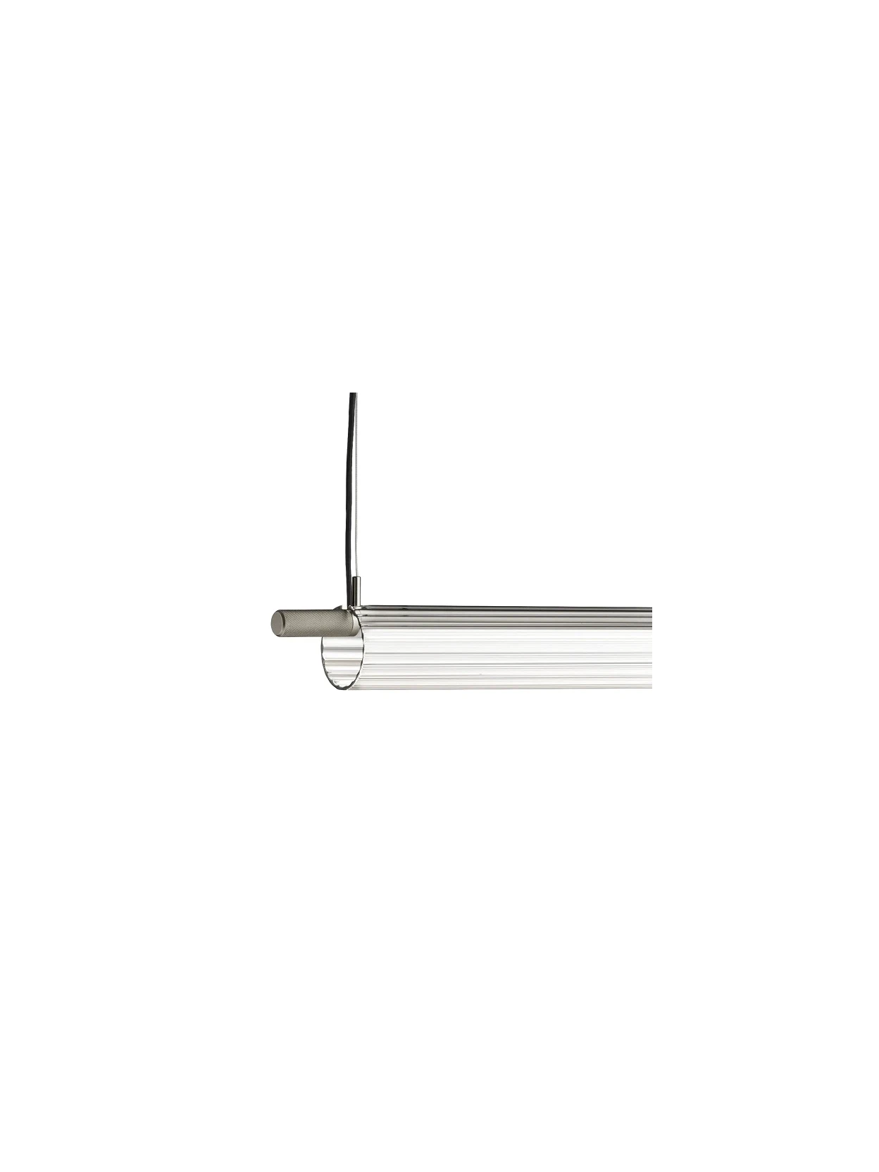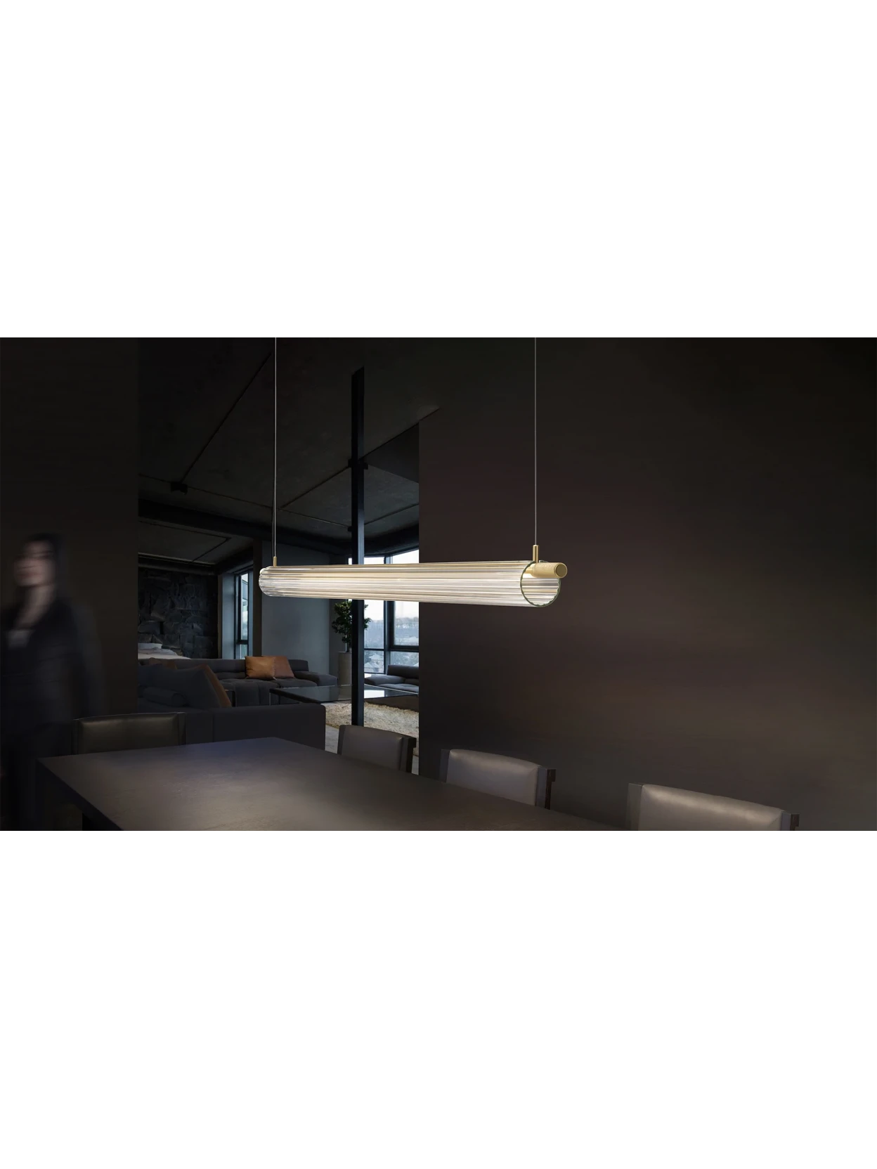 Trisel Titanio di Olev è la lampada a sospensione che unisce eleganza contemporanea e design minimale. Lo stelo in metallo verniciato a mano nella finitura titanio e il paralume in vetro artigianale con sottili righe scanalate diffondono una luce morbida e raffinata, ideale per tavoli da pranzo o spazi residenziali e commerciali. I terminali metallici con incisioni zigrinate completano un design sofisticato, rendendo Trisel Titanio un elemento luminoso di grande stile.